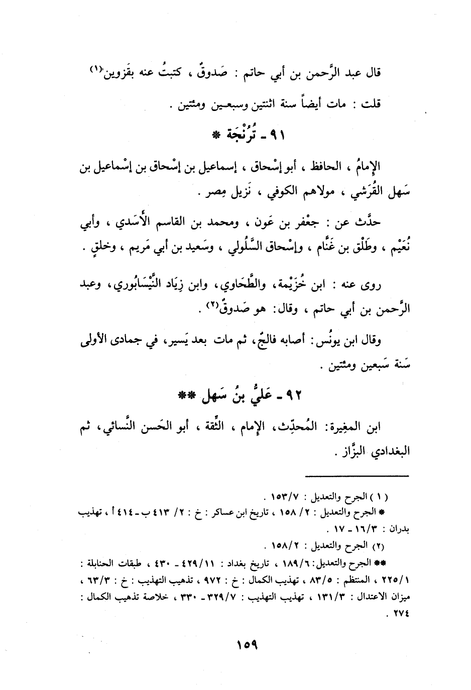 (* *) الجرح والتعديل: 6 / 189، تاريخ بغداد: 11 / 429 - 430، طبقات الحنابلة: 1 / 225، المنتظم: 5 / 83، تهذيب الكمال: خ: 972، تذهيب التهذيب: خ: 3 / 63، ميزان الاعتدال: 3 / 131، تهذيب التهذيب: 7 / 329 - 330، خلاصة تذهيب الكمال: 274.