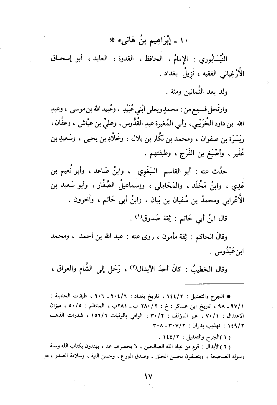 10 - إِبْرَاهِيْمُ بنُ هَانِىء النَّيْسَابُوْرِيُّ أَبُو إِسْحَاقَ *