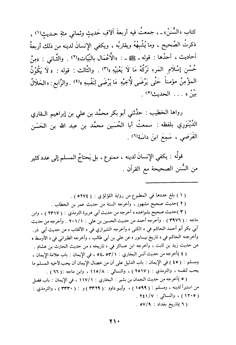 قَوْلُهُ: يَكْفِي الإِنْسَانَ لِدِيْنِهِ، ممنُوعٌ، بَلْ يَحْتَاجُ المُسْلِمُ إِلَى عَدَدٍ كَثِيْرٍ مِنَ السُّنَنِ الصَّحِيْحَةِ مَعَ القُرْآنِ.