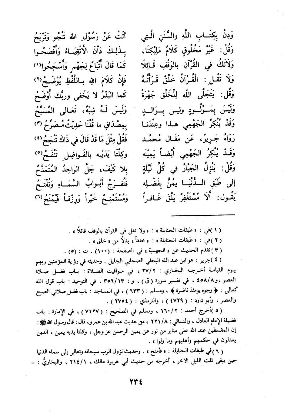 وَلاَ تَكُ فِي القُرْآنِ بِالوَقْفِ قَائِلاً ... كَمَا قَالَ أَتْبَاعٌ لِجَهْمٍ وَأَسْجَحُوا (1)