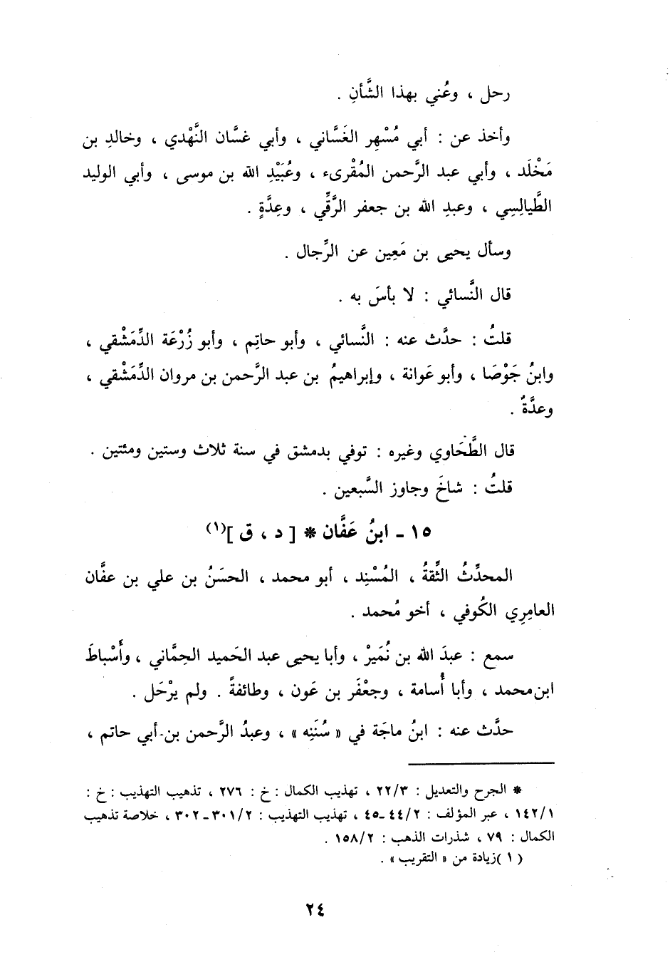 15 - ابْنُ عَفَّانَ أَبُو مُحَمَّدٍ الحَسَنُ بنُ عَلِيٍّ الكُوْفِيُّ * (د، ق (1))