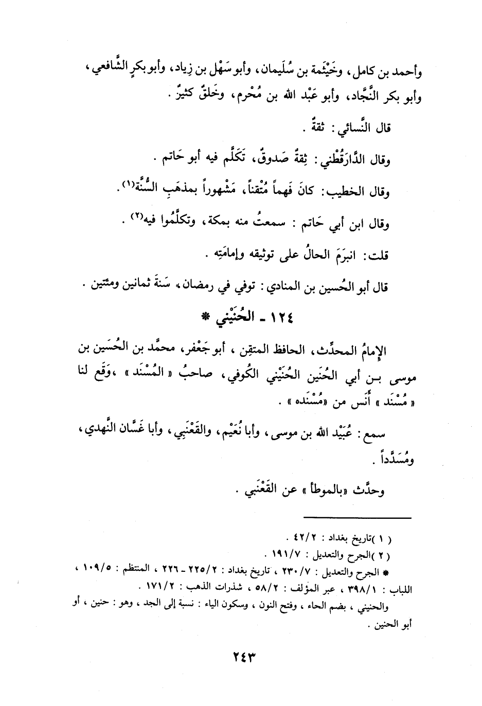 124 - الحُنَيْنِيُّ أَبُو جَعْفَرٍ مُحَمَّدُ بنُ الحُسَيْنِ بنِ مُوْسَى *