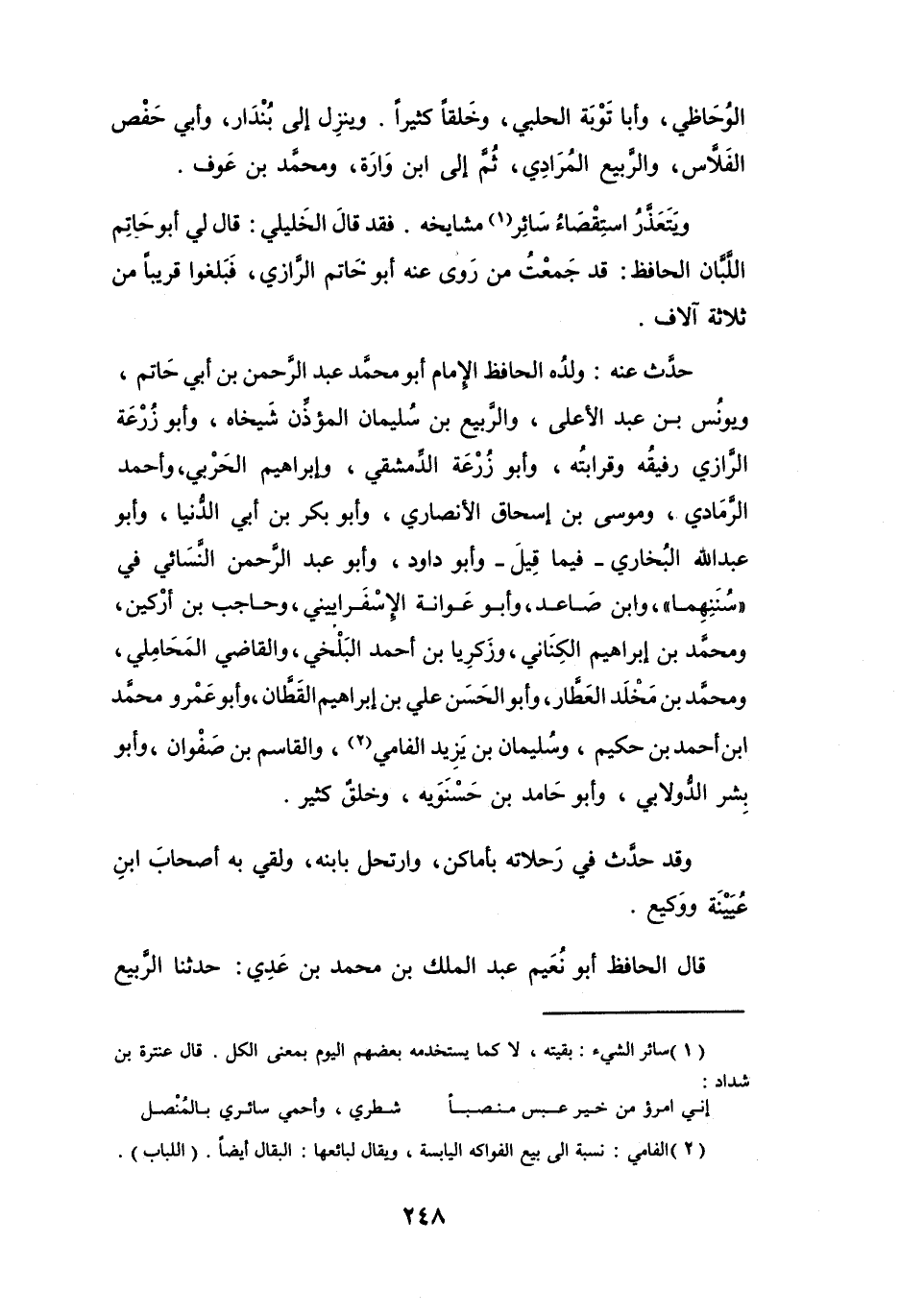 قَالَ الحَافِظُ أَبُو نُعَيْمٍ عَبْدُ المَلِكِ بنُ مُحَمَّدِ بنِ عَدِيٍّ: حَدَّثَنَا الرَّبِيْعُ