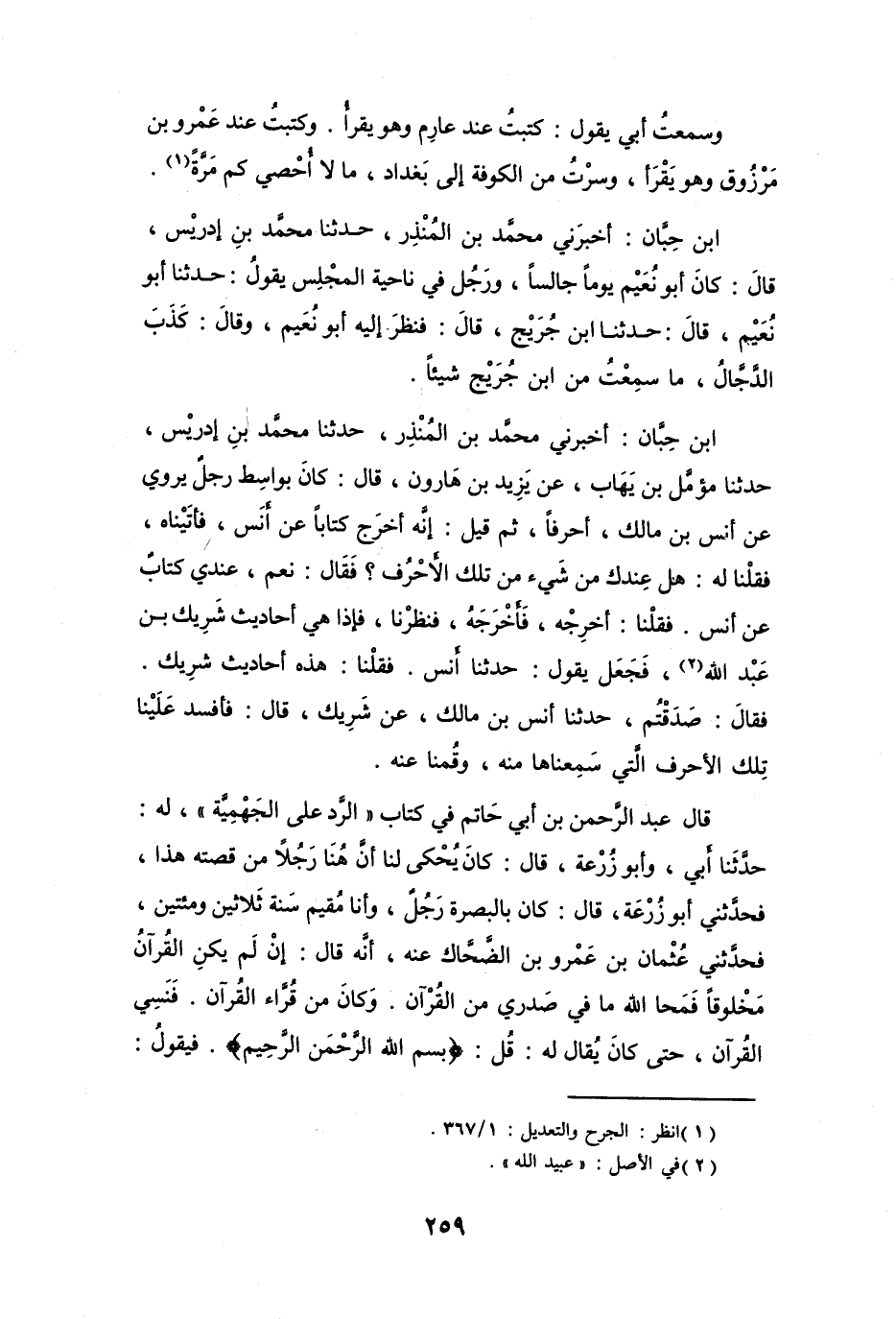 (1) انظر: الجرح والتعديل: 1 / 367.