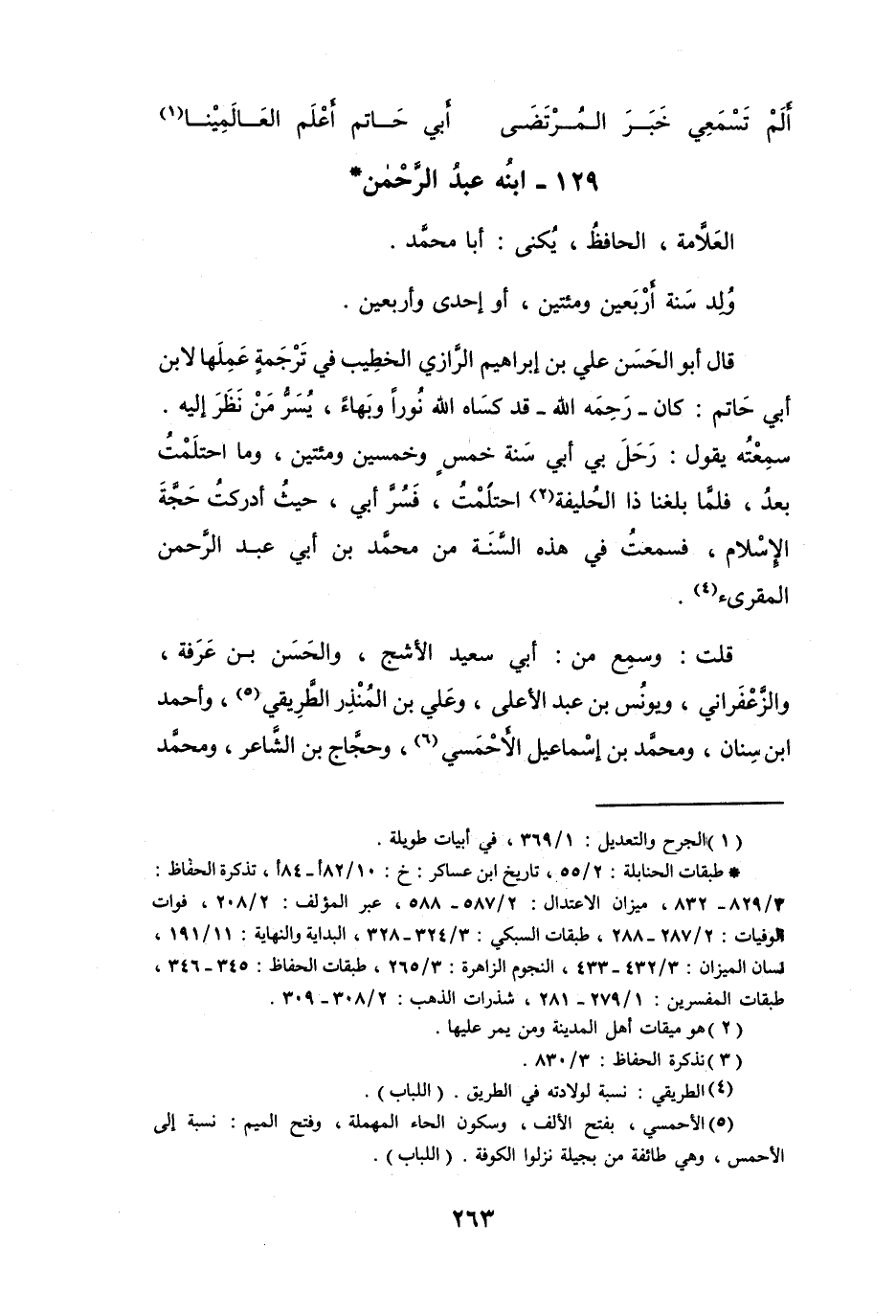 129 -عَبْدُ الرَّحْمَنِ أَبُو مُحَمَّدٍ بنُ مُحَمَّدِ بنِ إِدْرِيْسَ *