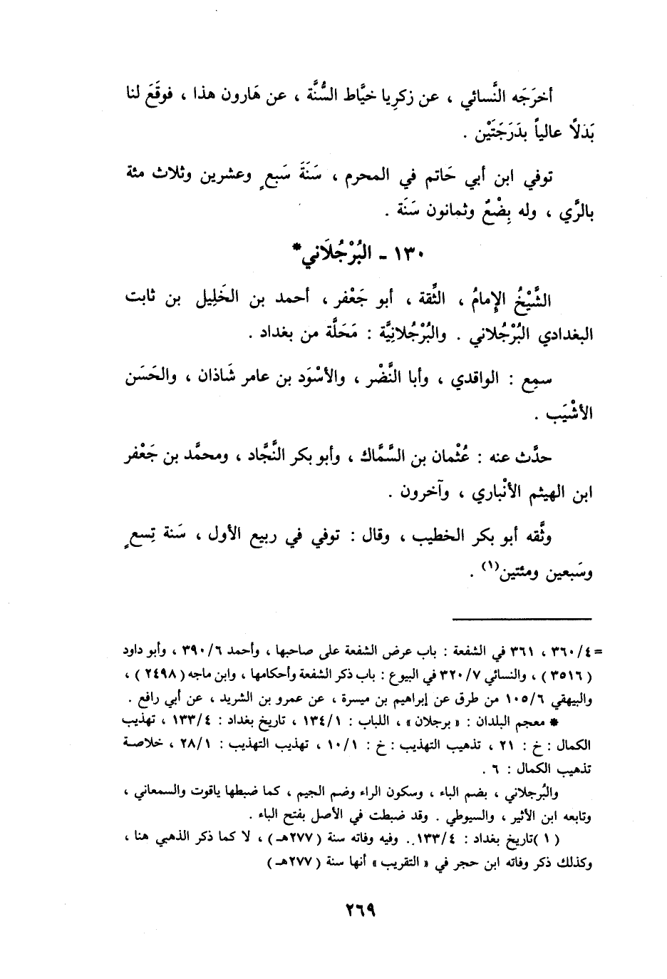 130 - البُرْجُلاَنِيُّ أَبُو جَعْفَرٍ أَحْمَدُ بنُ الخَلِيْلِ بنِ ثَابِتٍ *