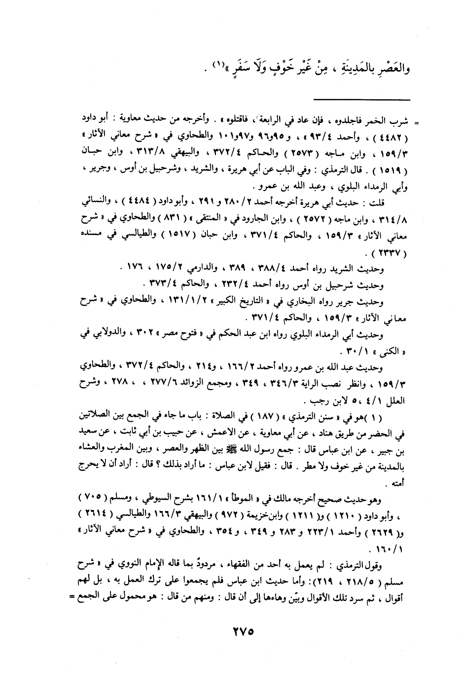 وحديث عبد الله بن عمرو رواه أحمد 2 / 166، و214، والحاكم 4 / 372، والطحاوي 3 / 159، وانظر نصب الراية 3 / 346، 349، ومجمع الزوائد 6 / 277،، 278، وشرح العلل 1 / 4، 5 لابن رجب.
