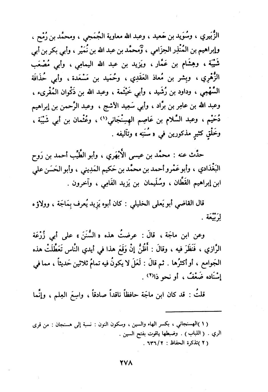 قُلْتُ: قَدْ كَانَ ابْنُ مَاجَهْ حَافِظاً نَاقِداً صَادِقاً، وَاسِعَ العِلْمِ، وَإِنَّمَا