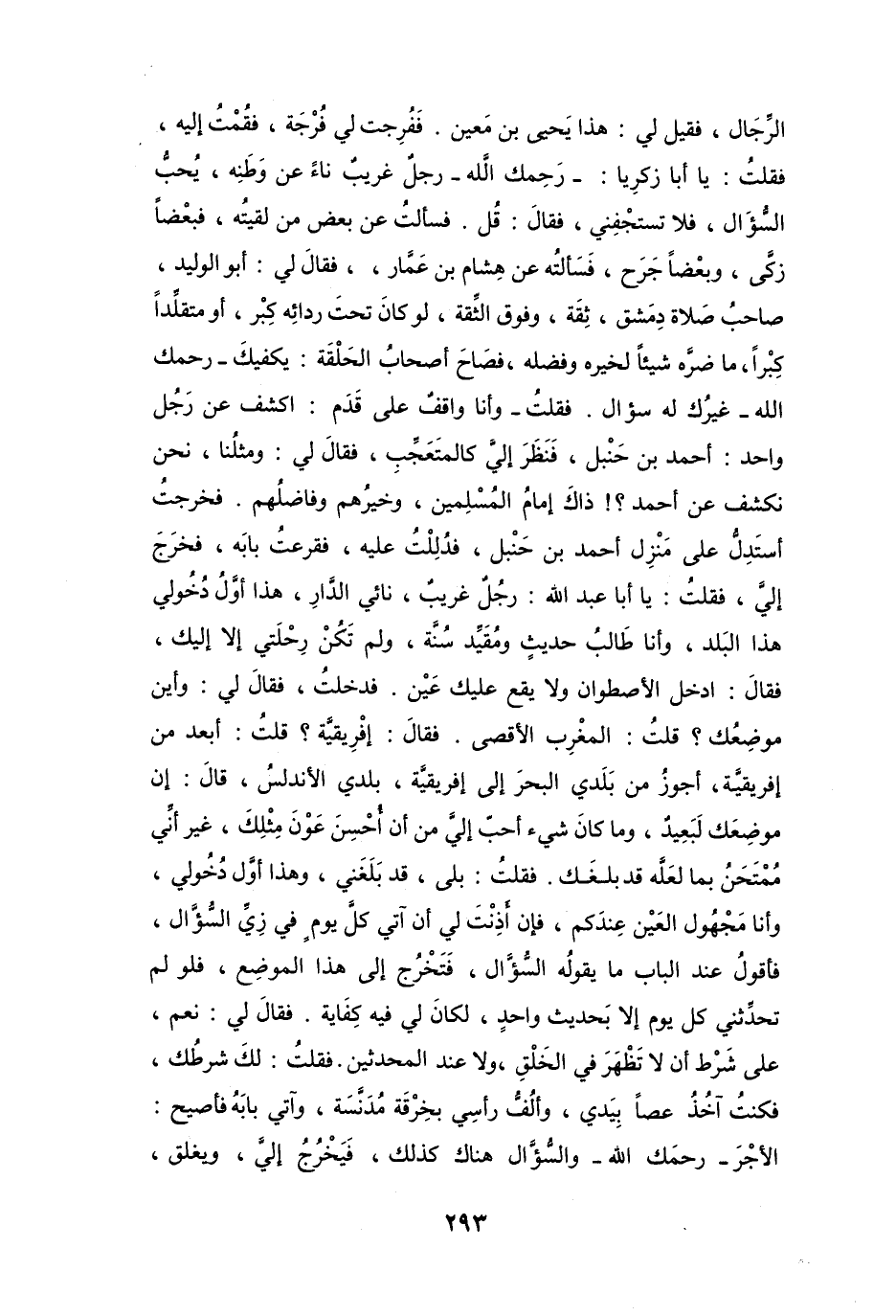 يَا أَبَا عَبْدِ اللهِ رَجُلٌ غَرِيْبٌ، نَائِي الدَّارِ، هَذَا أَوَّلُ دُخُوْلِي هَذَا البَلَد، وَأَنَا طَالِبُ حَدِيْثٍ، وَمُقَيِّدُ سُنَّةٍ، وَلَمْ تَكُنْ رِحْلَتِي إِلاَّ إِلَيْكَ.