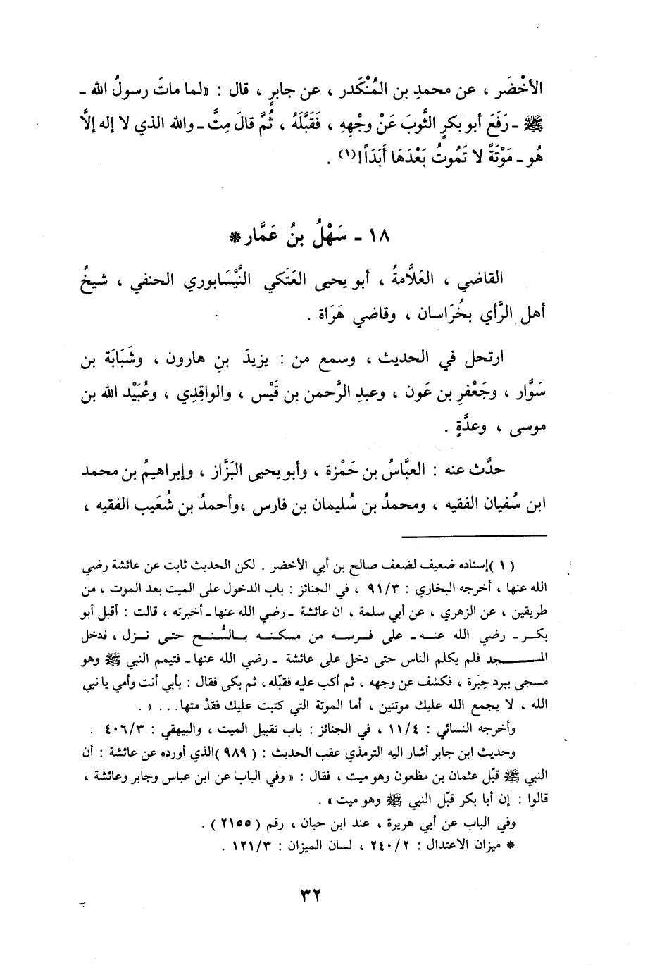 18 - سَهْلُ بنُ عَمَّارٍ أَبُو يَحْيَى النَّيْسَابُوْرِيُّ *