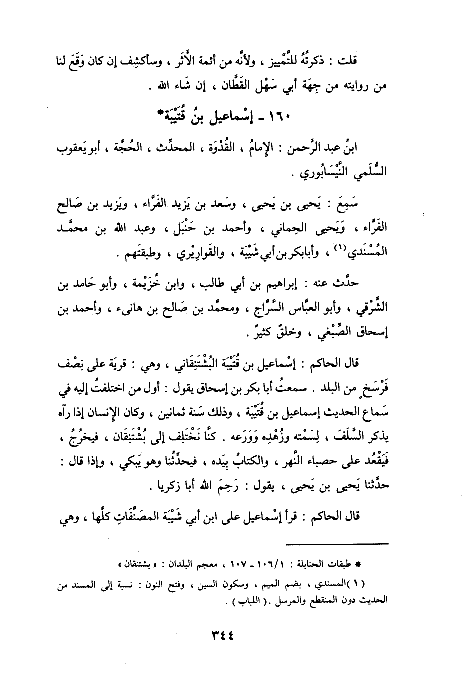 (*) طبقات الحنابلة: 1 / 106 - 107، معجم البلدان: " بشتنقان "