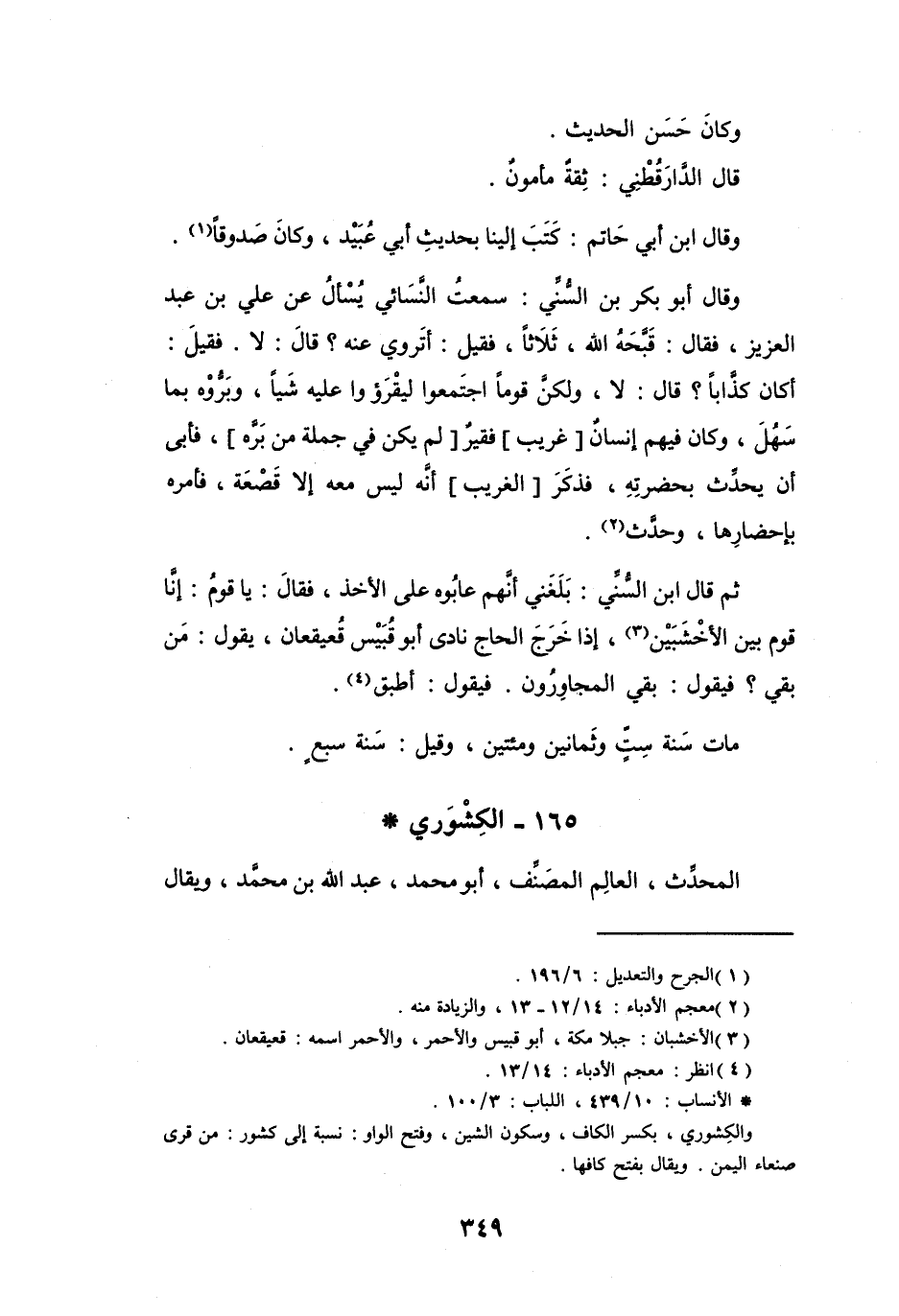 165 - الكِشْوَرِيُّ أَبُو مُحَمَّدٍ عَبْدُ اللهِ بنُ مُحَمَّدٍ *