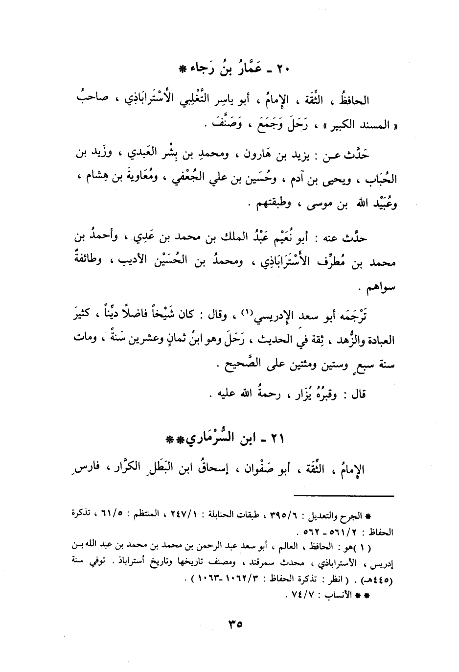 20 - عَمَّارُ بنُ رَجَاءَ أَبُو يَاسِرٍ التَّغْلِبِيُّ الأَسْترَابَاذِيُّ *