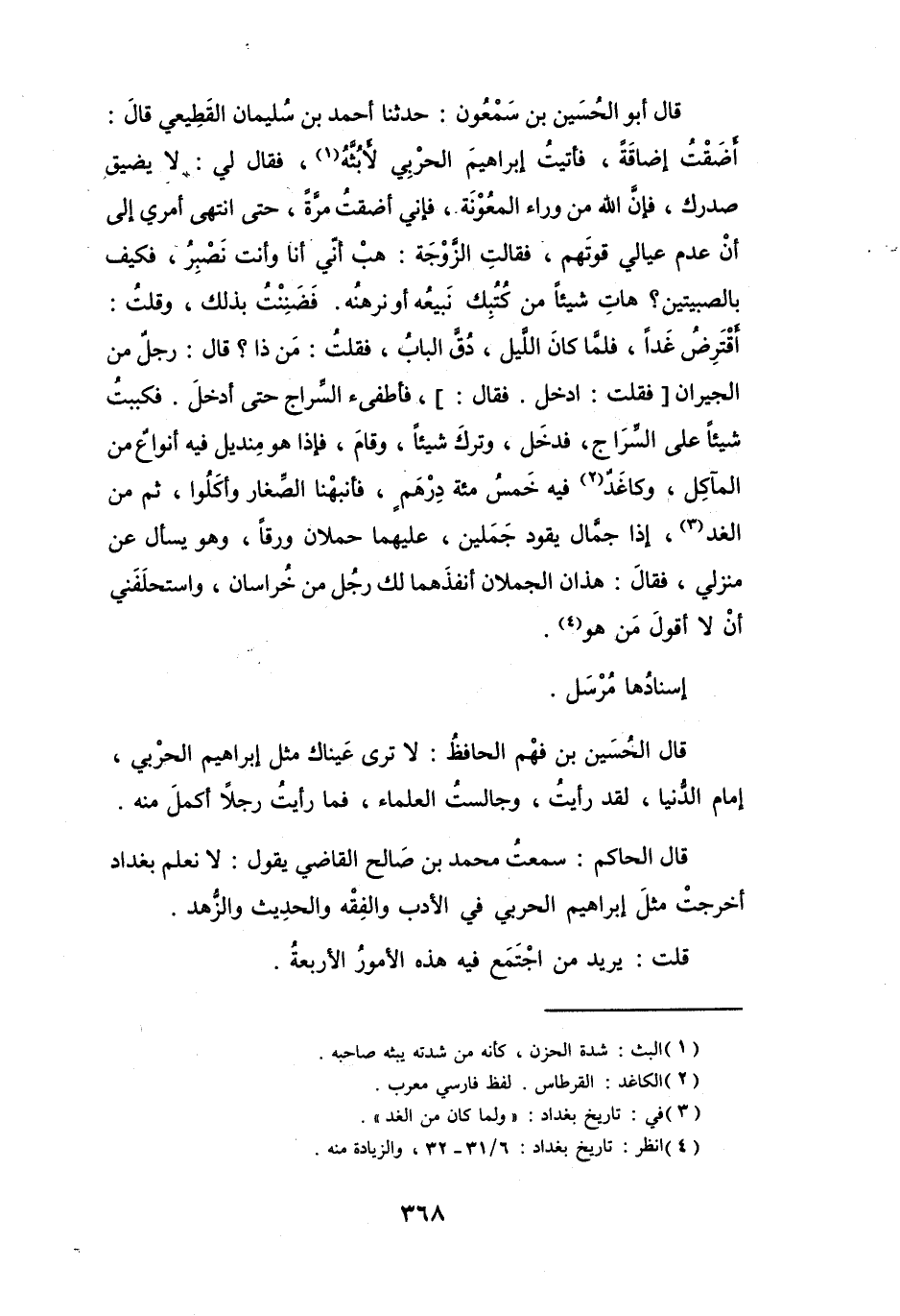 (4) انظر: تاريخ بغداد: 6 / 31 - 32، والزيادة منه.
