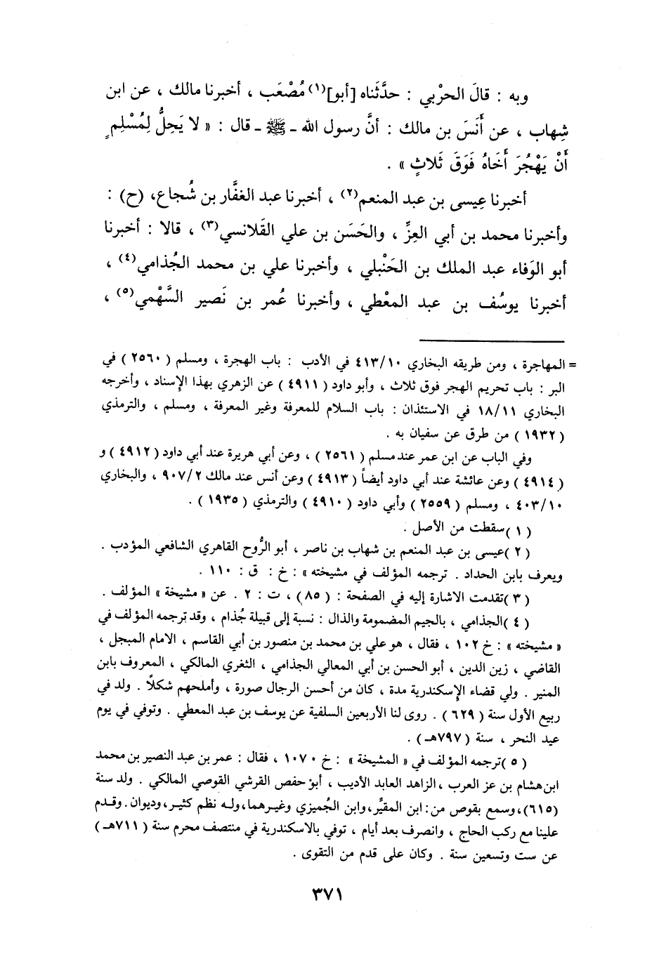 أَخْبَرَنَا أَبُو الوَفَاء عَبْد المَلِكِ بن الحَنْبَلِيّ، وَأَخْبَرَنَا عَلِيُّ بنُ مُحَمَّدٍ الجُذَامِيّ (4) ، أَخْبَرَنَا يُوْسُفُ بنُ عَبْدِ المعْطي، وَأَخْبَرَنَا عُمَرُ بنُ نُصَيْر السَّهْمِيّ (5) ،