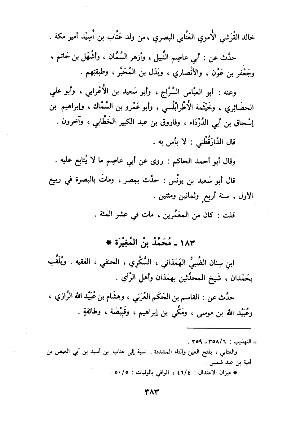 183 - مُحَمَّدُ بنُ المُغِيْرَةِ بنِ سِنَانٍ الضَّبِّيُّ الهَمَذَانِيُّ *
