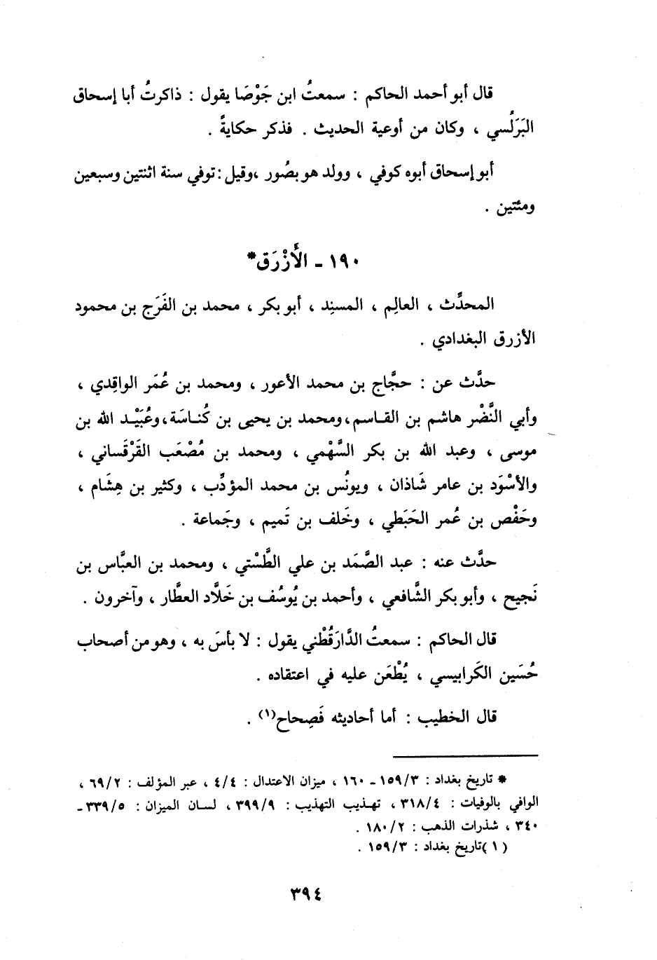 (1) تاريخ بغداد: 3 / 159.