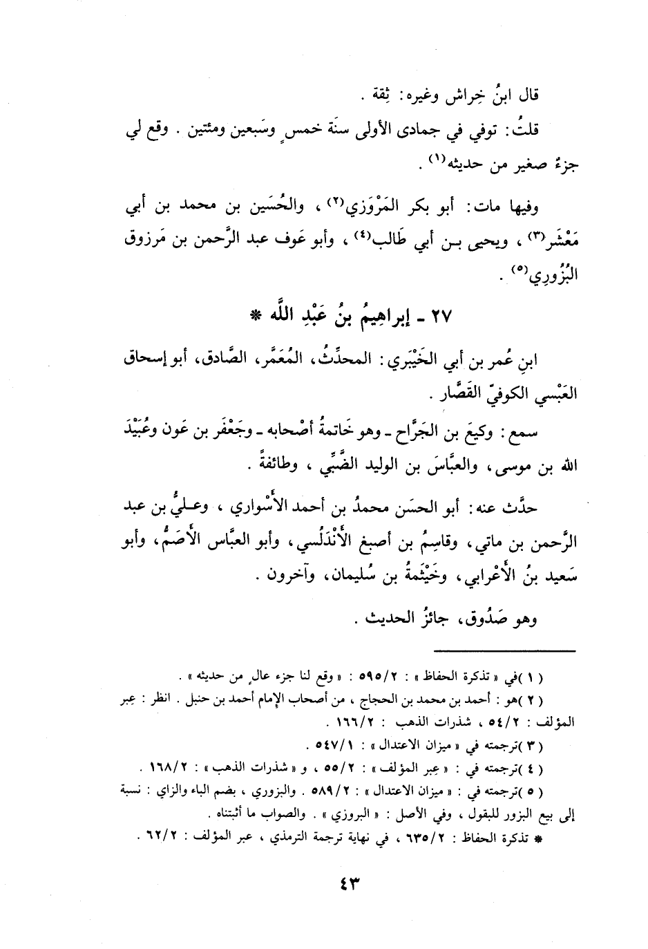 27 - إِبْرَاهِيْمُ بنُ عَبْدِ اللهِ بنِ عُمَرَ بنِ أَبِي الخَيْبَرِيِّ الكُوْفِيُّ *