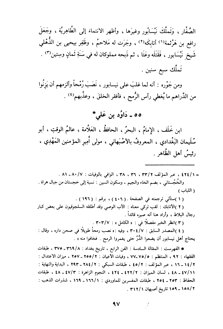 55 - دَاوُدُ بنُ عَلِيِّ بنِ خَلَفٍ البَغْدَادِيُّ الظَّاهِرِيُّ *