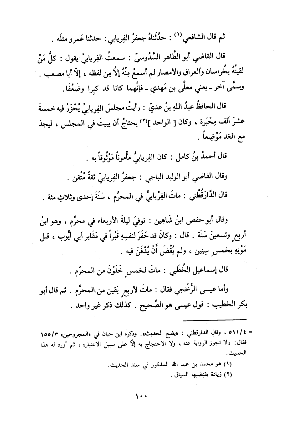 قَالَ القَاضِي أَبُو الطَّاهِرِ السَّدُوْسِيُّ: سَمِعْتُ الفِرْيَابِيَّ يَقُوْلُ: