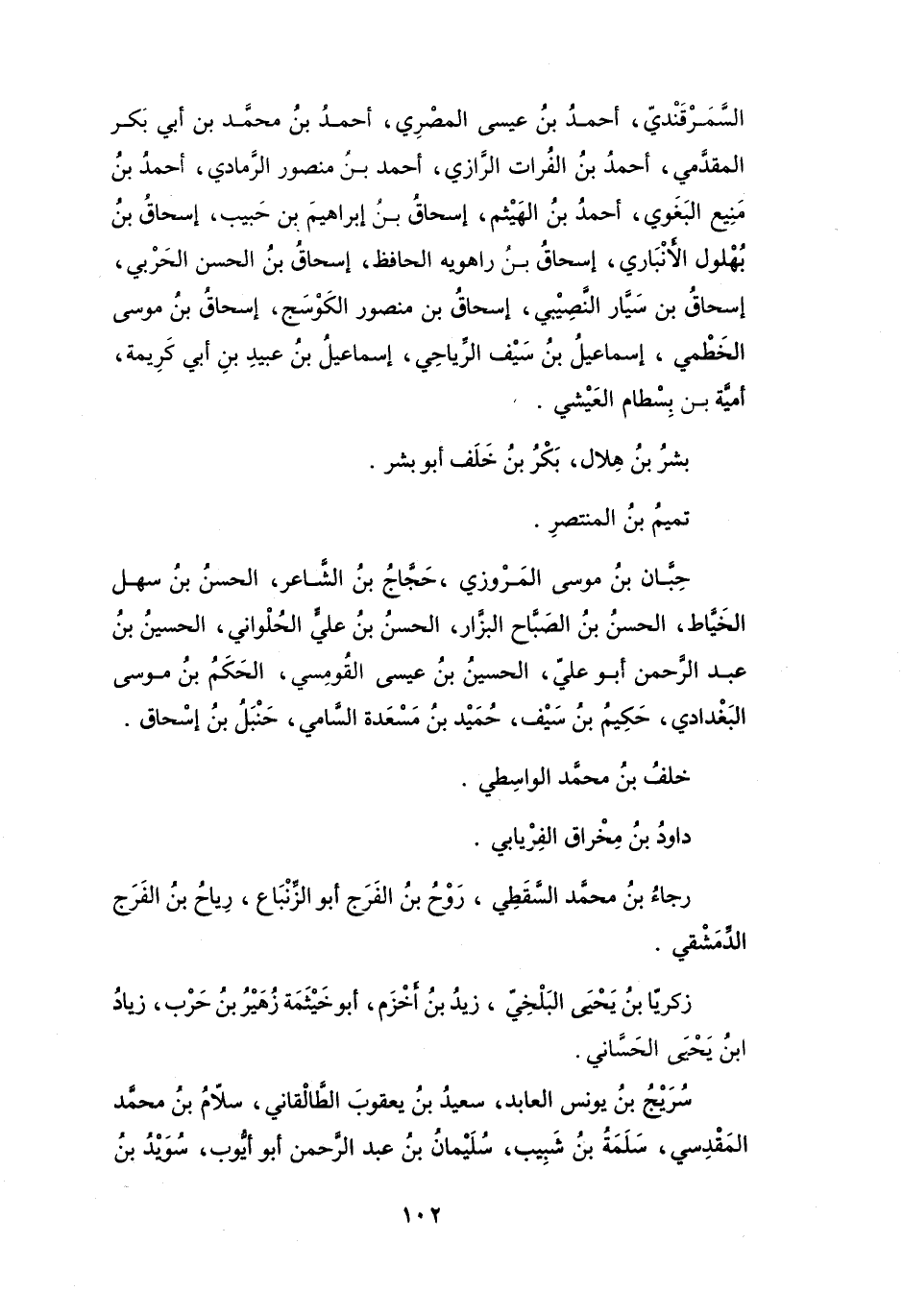 السَّمَرْقِنْدِيُّ، أَحْمَدُ بنُ عِيْسَى المِصْرِيُّ، أَحْمَدُ بنُ مُحَمَّدِ بنِ أَبِي بَكْرٍ المُقَدَّمِيُّ، أَحْمَدُ بنُ الفُرَاتِ الرَّازِيُّ، أَحْمَدُ بنُ مَنْصُوْرٍ الرَّمَادِيُّ، أَحْمَدُ بنُ مَنِيْعٍ البَغَوِيُّ، أَحْمَدُ بنُ الهَيْثَمِ.