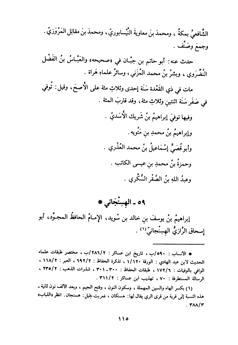 59 - الهِسِنْجَانِيُّ إِبْرَاهِيْمُ بنُ يُوْسُفَ بنِ خَالِدِ بنِ سُوَيْدٍ *