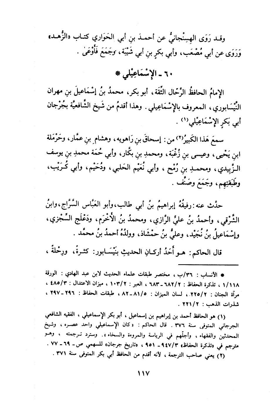 (1) هو الحافظ أحمد بن إبراهيم بن إسماعيل، أبو بكر الاسماعيلي، الفقيه الشافعي الجرجاني المتوفى سنة 376.