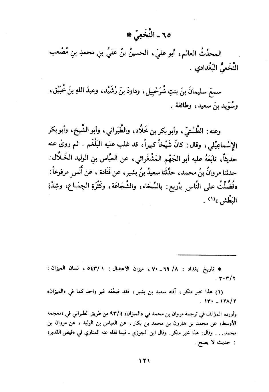 (*) تاريخ بغداد: 8 / 70 69، ميزان الاعتدال: 1 / 543، لسان الميزان: 2 / 303.
