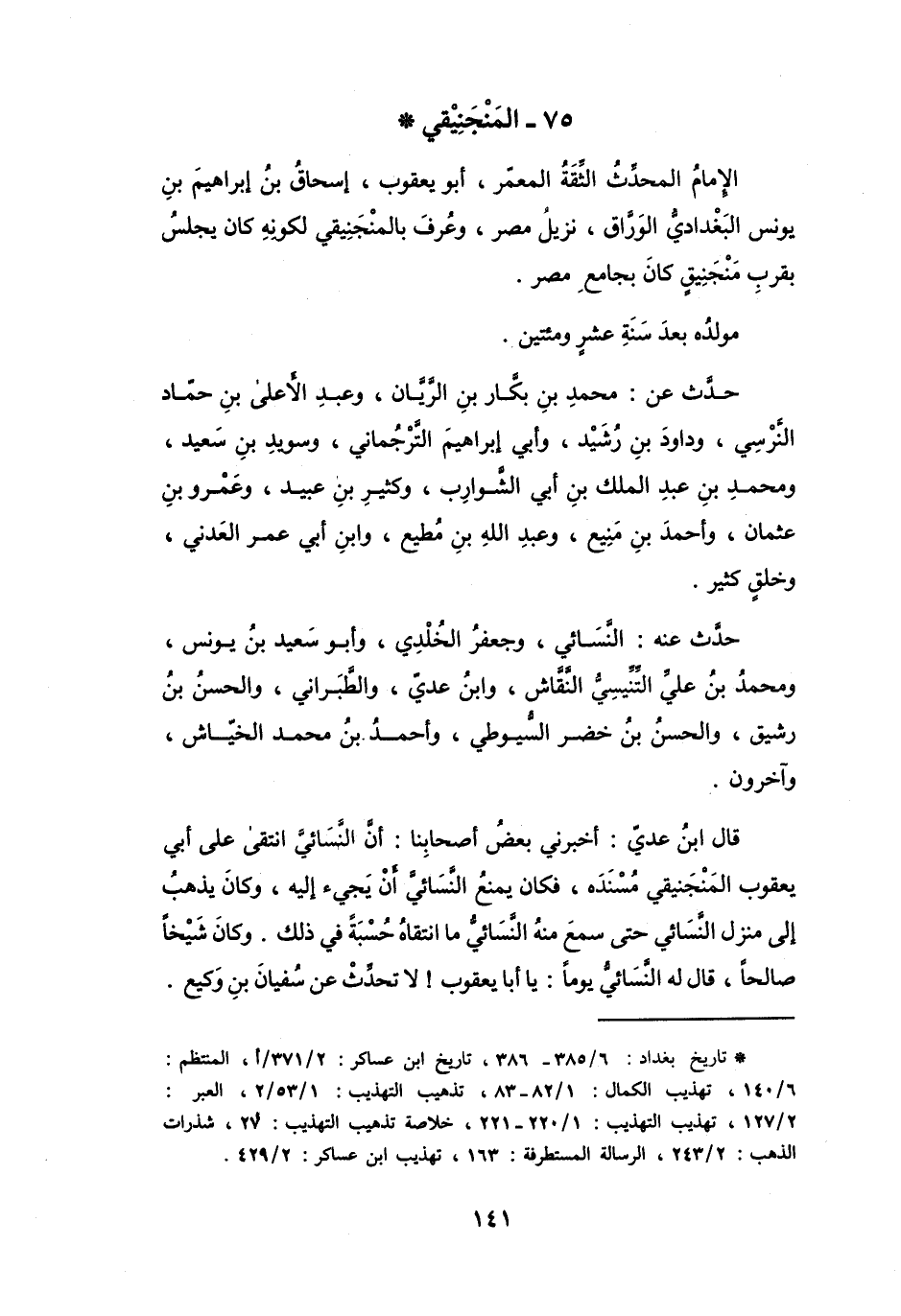 75 - المِنْجَنِيْقِيُّ أَبُو يَعْقُوْبَ إِسْحَاقُ بنُ إِبْرَاهِيْمَ بنِ يُوْنُسَ *