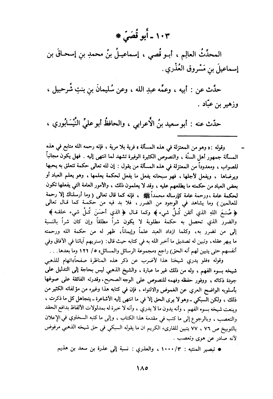 103 - أَبُو قُصَيٍّ إِسْمَاعِيْلُ بنُ مُحَمَّدِ بنِ إِسْحَاقَ العُذْرِيُّ *