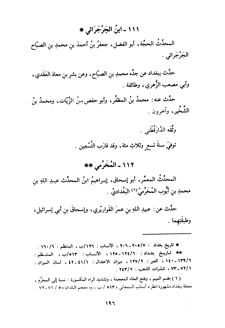 (*) تاريخ بغداد: 7 / 206 205، الأنساب: 126 / ب، المنتظم:؟ / 160.