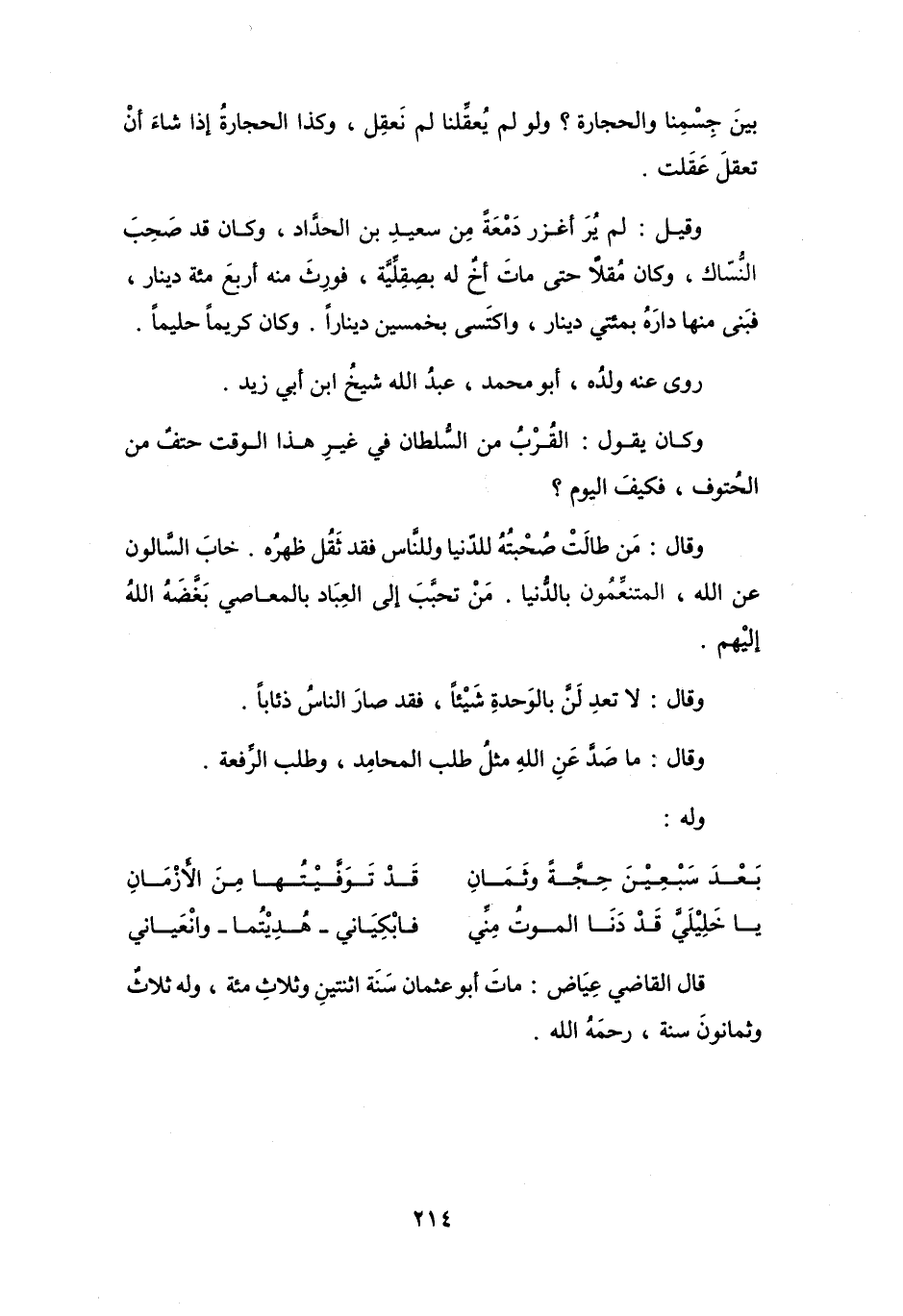 بَعْدَ سَبْعِيْنَ حِجَّة وَثَمَانِ ... قَدْ تَوَفَّيْتُهَا مِنَ الأَزْمَانِ