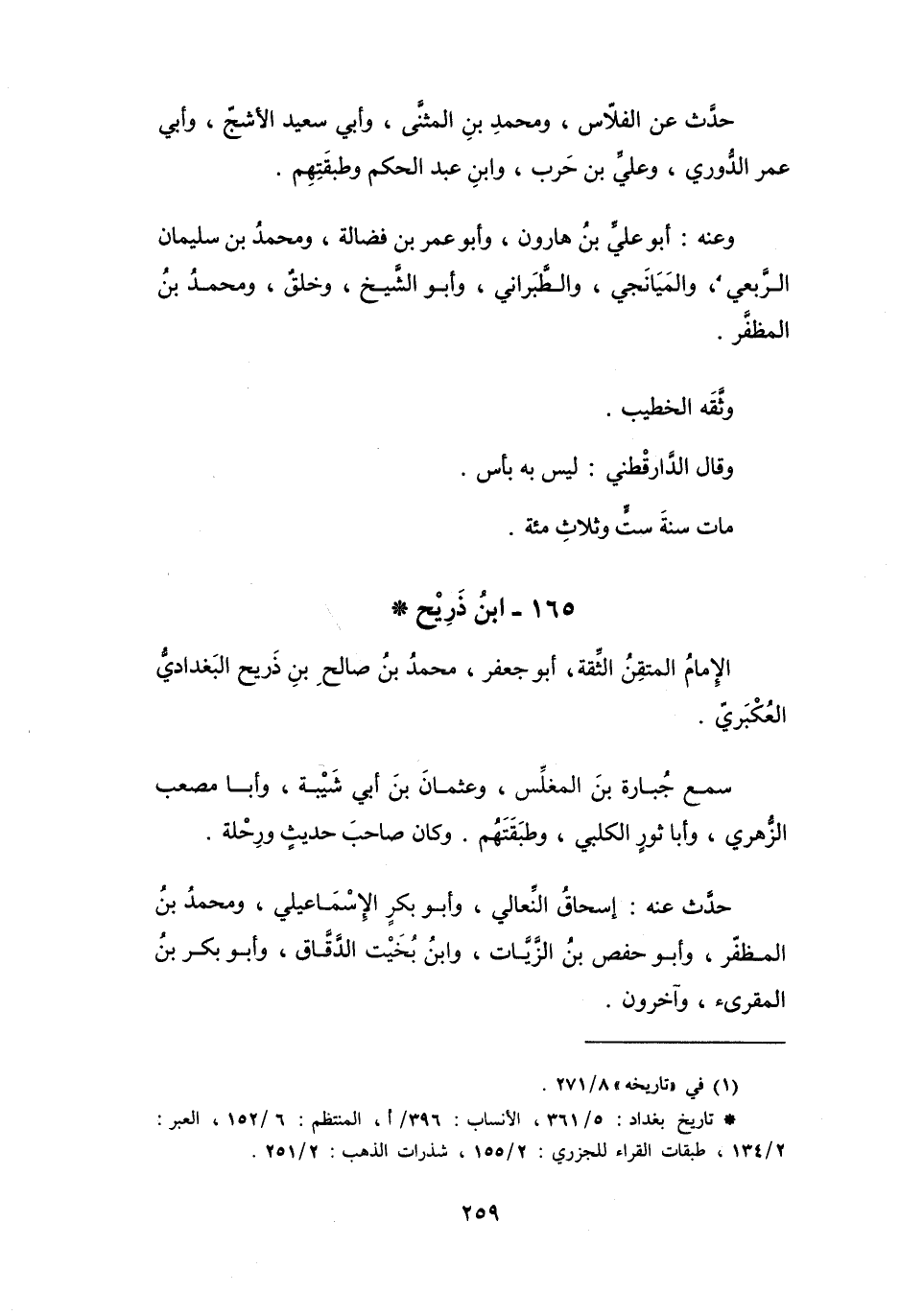 165 - ابْنُ ذَرِيْحٍ أَبُو جَعْفَرٍ مُحَمَّدُ بنُ صَالِحٍ البَغْدَادِيُّ *