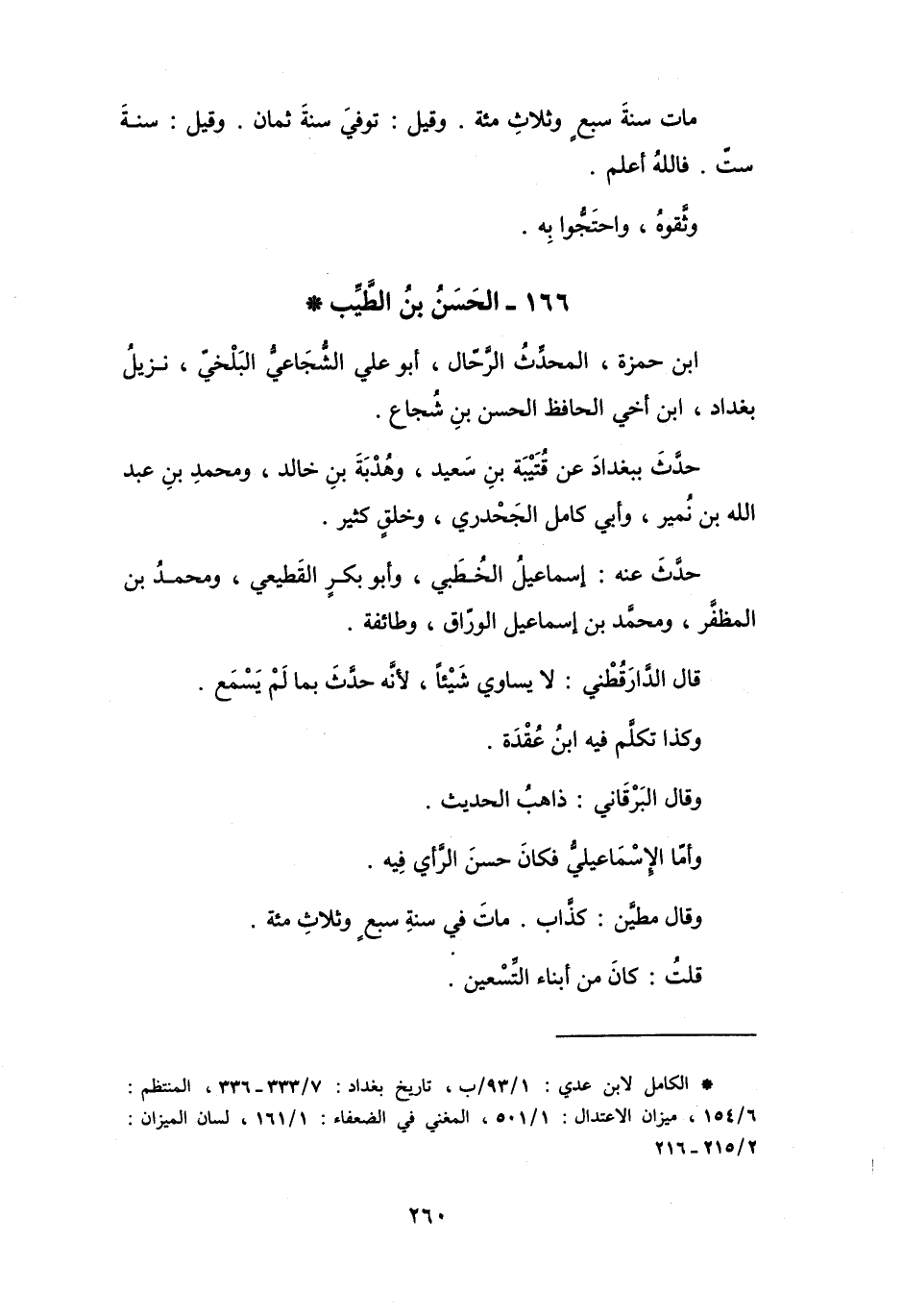 (*) الكامل لابن عدي: 1 / 93 / ب، تاريخ بغداد: 7 / 336 333، المنتظم: 6 / 154، ميزان الاعتدال: 1 / 501، المغني في الضعفاء: 1 / 161، لسان الميزان: 2 / 216 215