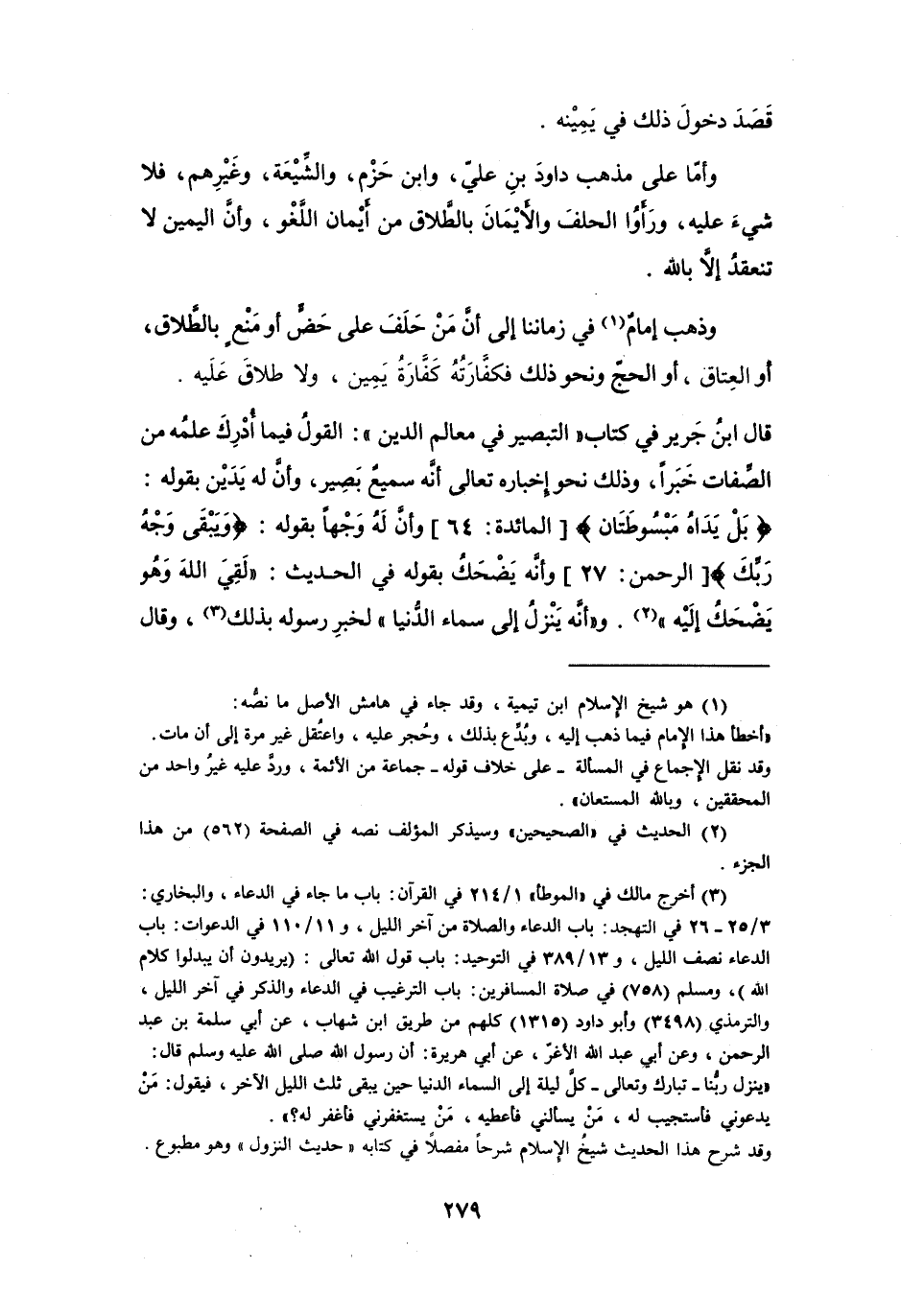 (1) هو شيخ الإسلام ابن تيمية، وقد جاء في هامش الأصل ما نصه: " أخطأ هذا الامام فيما ذهب إليه، وبدع بذلك، وحجر عليه، واعتقل غير مرة إلى أن مات.