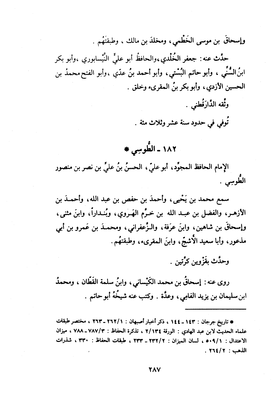 182 - الطُّوْسِيُّ أَبُو عَلِيٍّ الحَسَنُ بنُ عَلِيِّ بنِ نَصْرٍ *