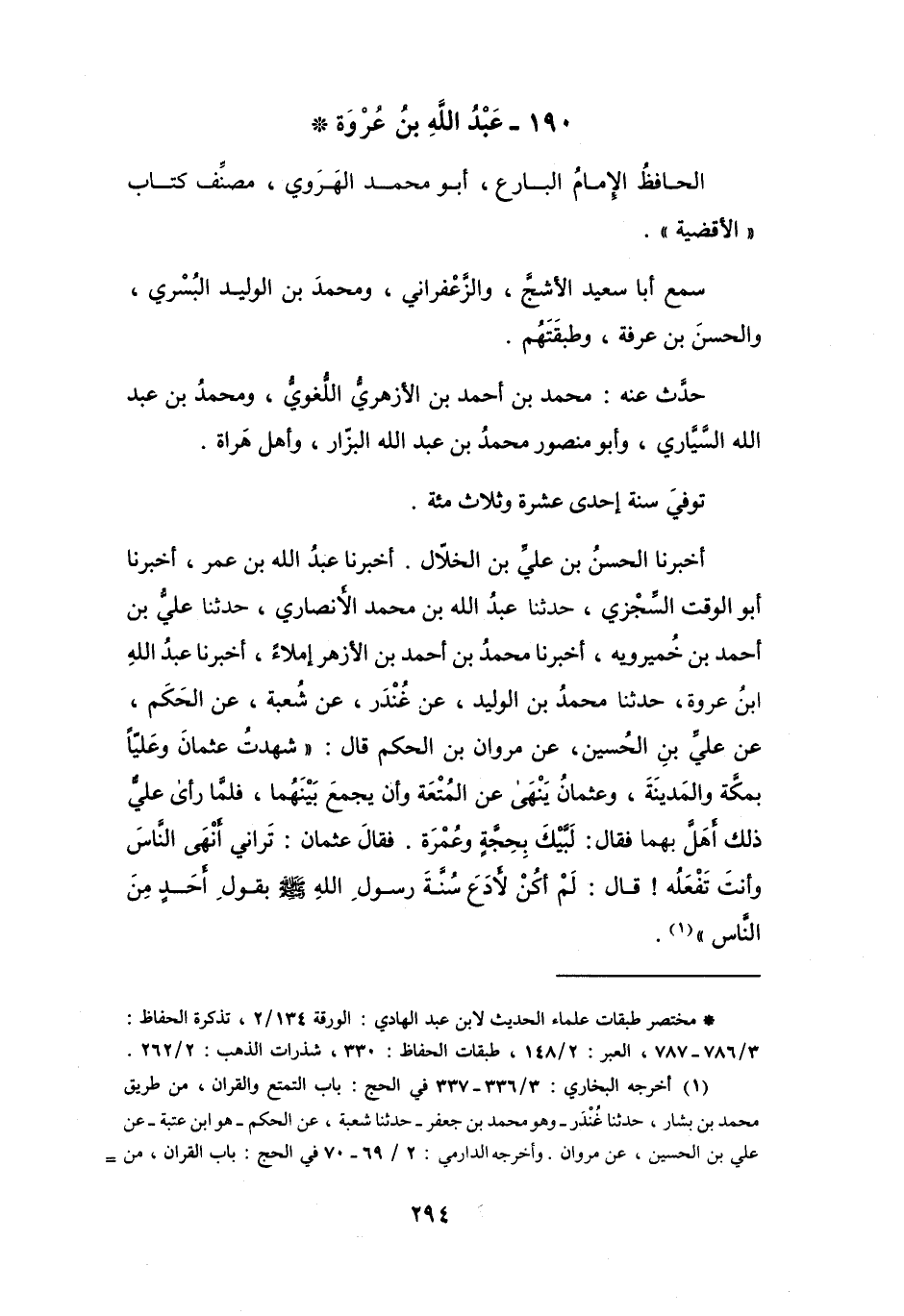 190 - عَبْدُ اللهِ بنُ عُرْوَةَ أَبُو مُحَمَّدٍ الهَرَوِيُّ *