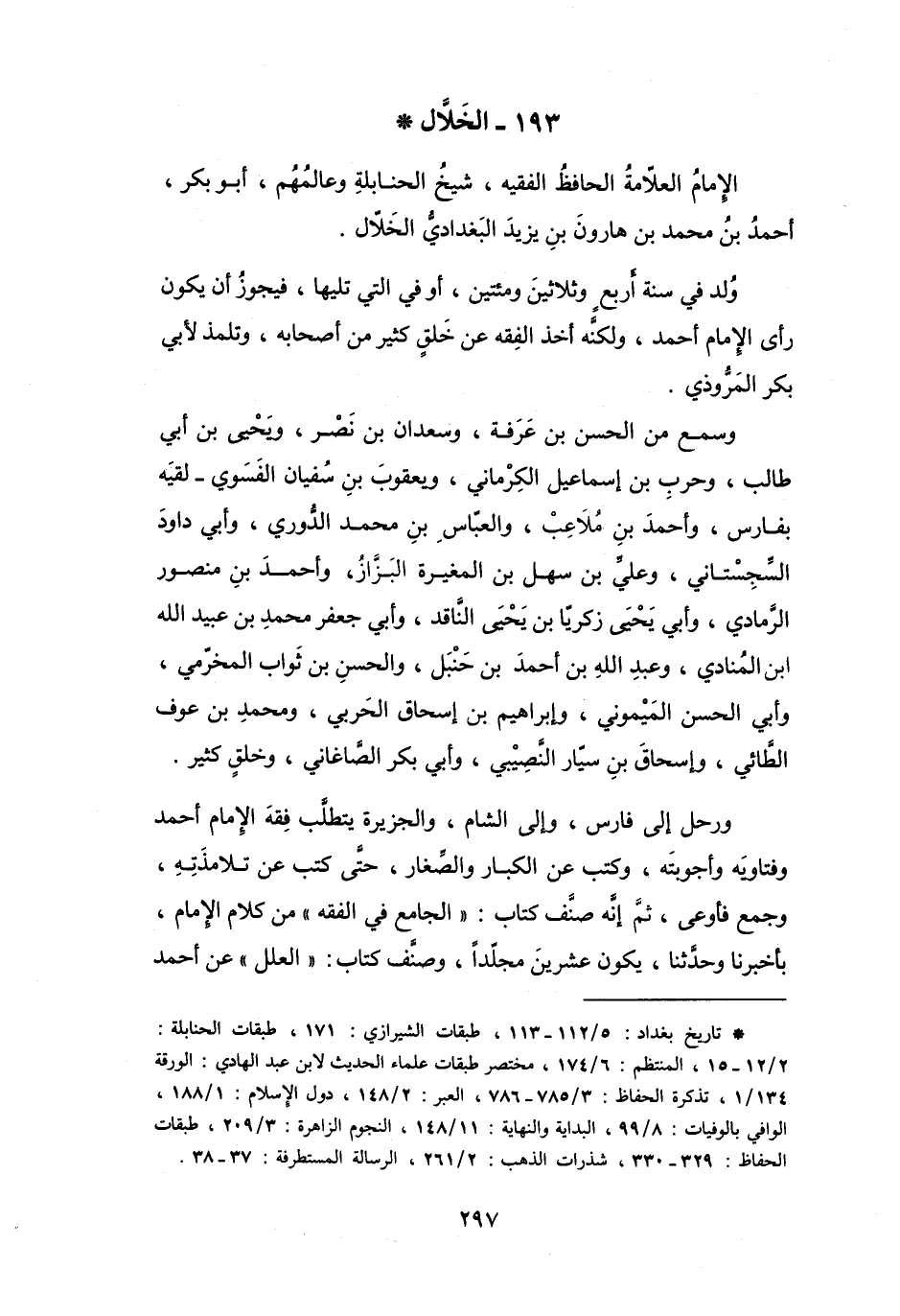 193 - الخَلاَّلُ أَبُو بَكْرٍ أَحْمَدُ بنُ مُحَمَّدِ بنِ هَارُوْنَ *