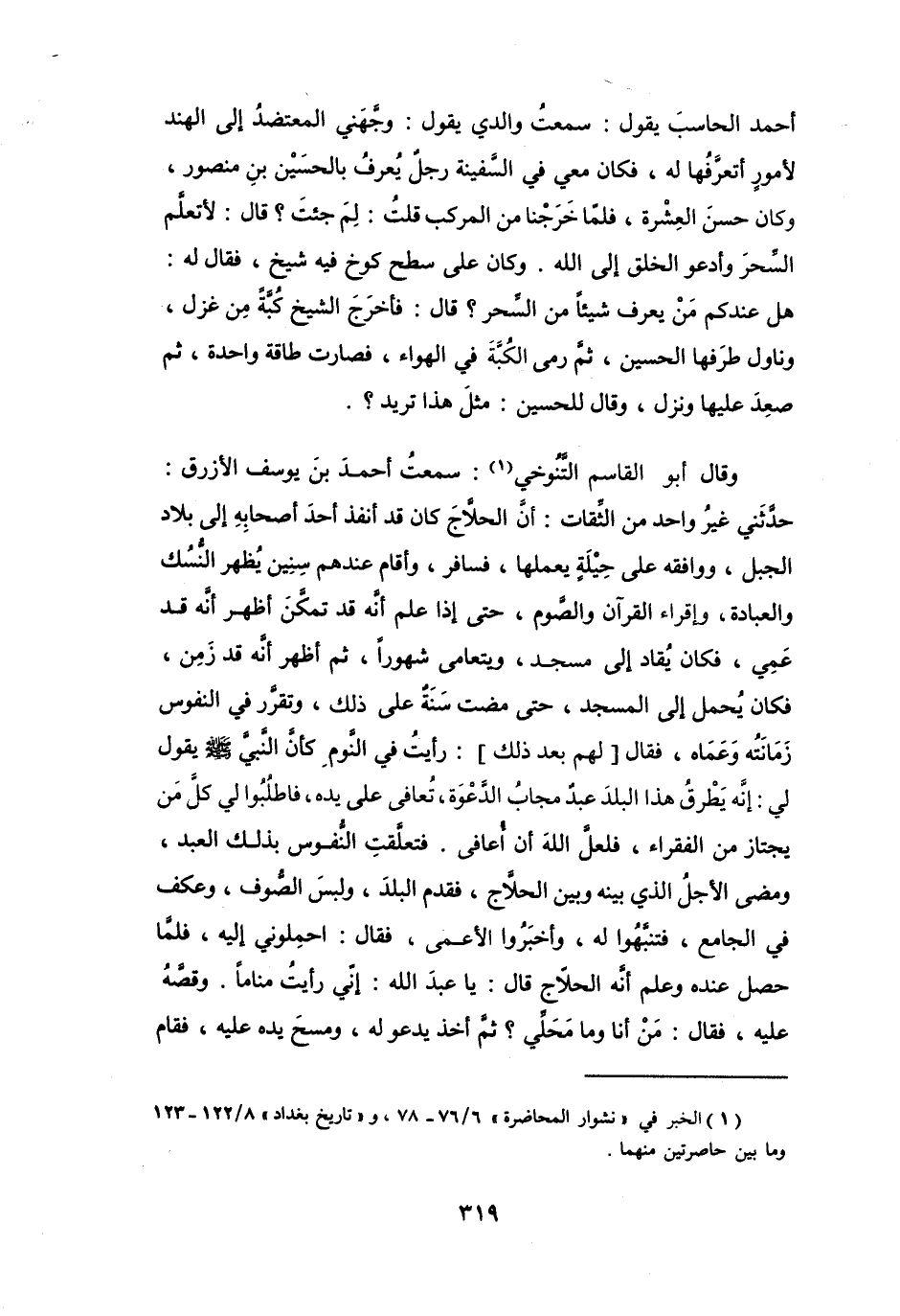 (1) الخبر في " نشوار المحاضرة " 6 / 78 76، و" تاريخ بغداد " 8 / 123 122 وما بين حاصرتين منهما.