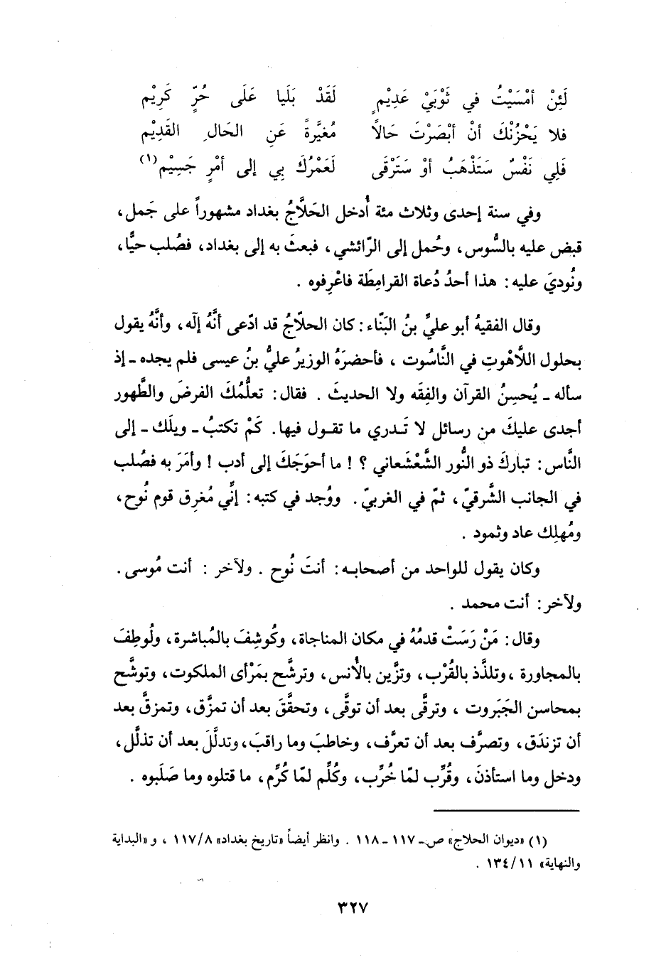 (1) " ديوان الحلاج 2 ص 118 117. وانظر أيضا " تاريخ بغداد " 8 / 117، و" البداية والنهاية " 11 / 134.