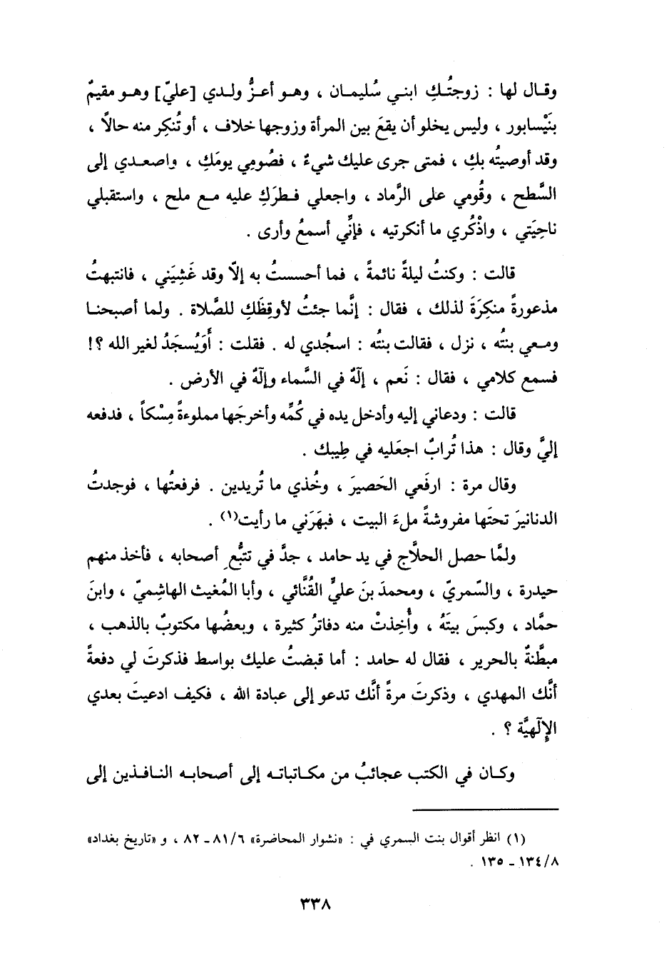 (1) انظر أقوال بنت السمري في: " نشوار المحاضرة " 6 / 82 81، و" تاريخ بغداد " 8 / 135 134.