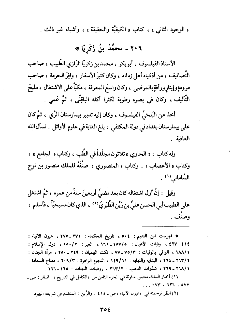 206 - مُحَمَّدُ بنُ زَكَرِيَّا الرَّازِيُّ الطَّبِيْبُ *