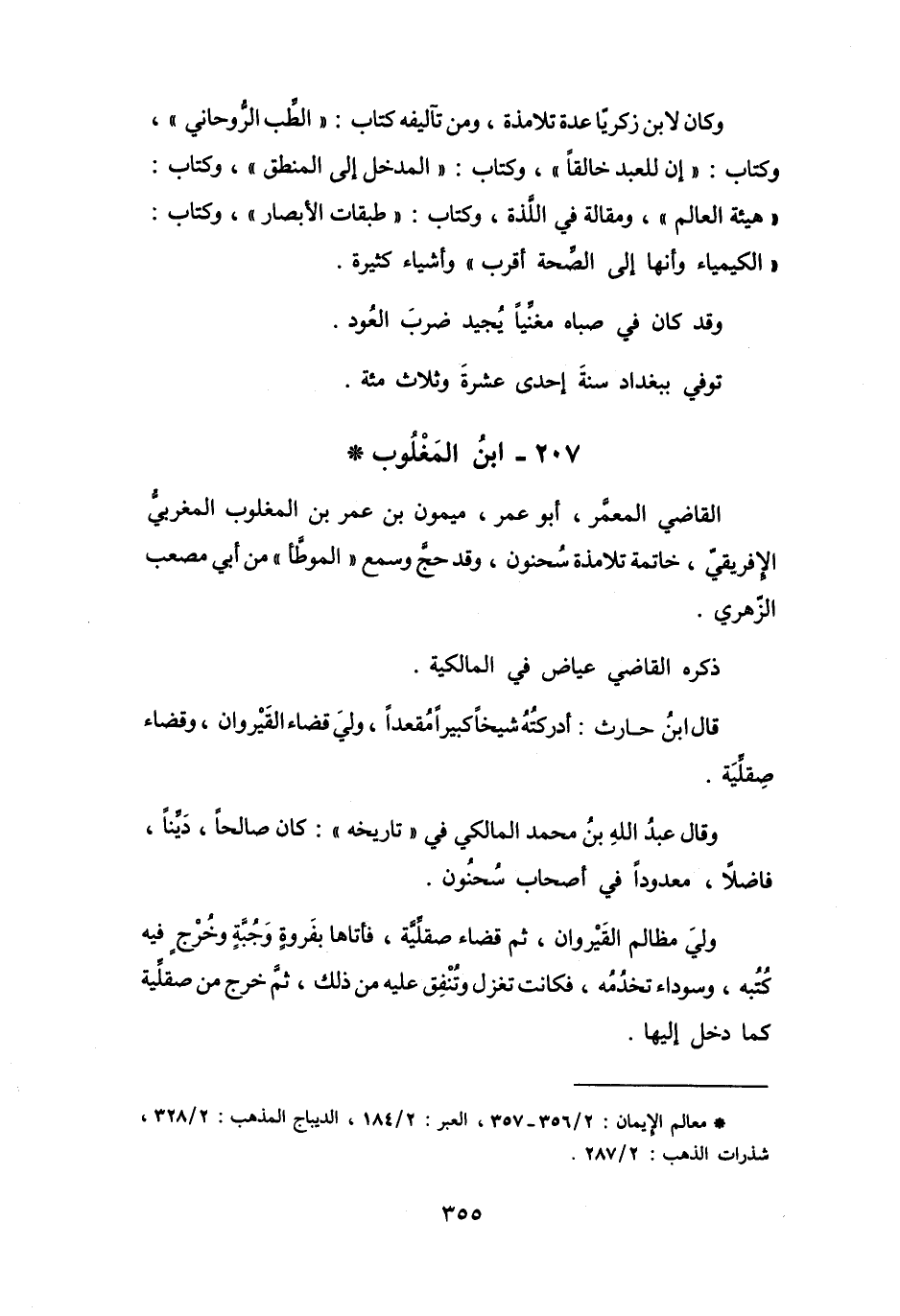 (*) معالم الايمان: 2 / 357 356، العبر: 2 / 184، الديباج المذهب: 2 / 328، شذرات الذهب: 2 / 287.