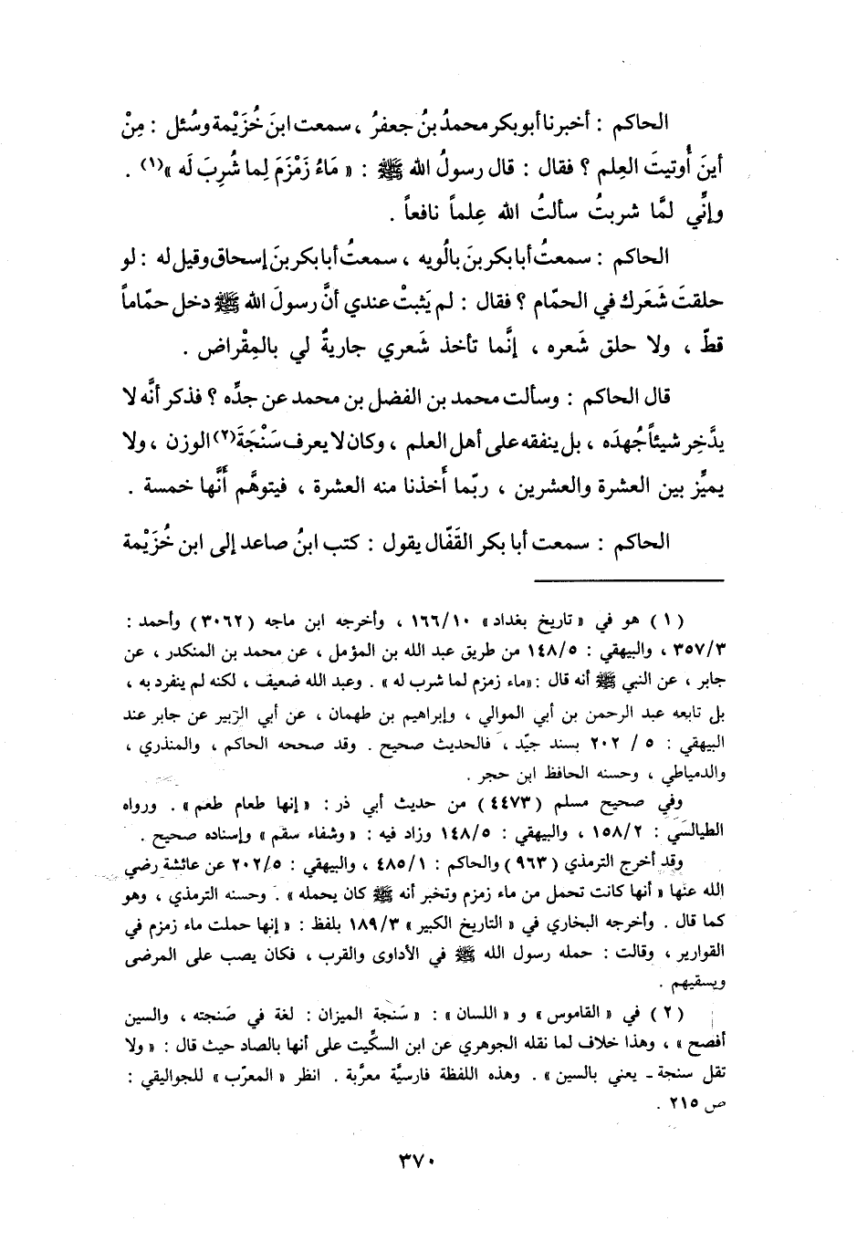 الحَاكِمُ: أَخْبَرَنَا أَبُو بَكْرٍ مُحَمَّدُ بنُ جَعْفَرٍ، سَمِعْتُ ابْنَ خُزَيْمَةَ وَسُئِلَ: مِنْ أَيْنَ أُوتِيتَ العِلْمَ؟ فَقَالَ: