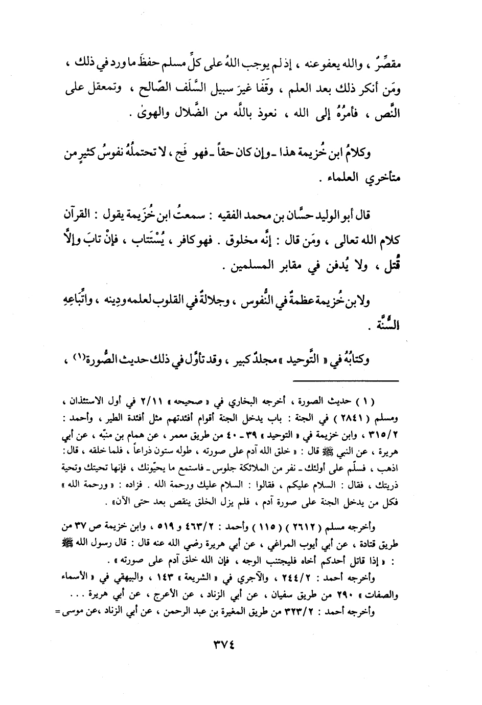 وَكَلاَمُ ابْنِ خُزَيْمَةَ هَذَا - وَإِنْ كَانَ حَقّاً - فَهُوَ فَجٌّ، لاَ تَحْتَمِلُهُ نُفُوْسُ كَثِيْرٍ مِنْ مُتَأَخِّرِي العُلَمَاءِ.