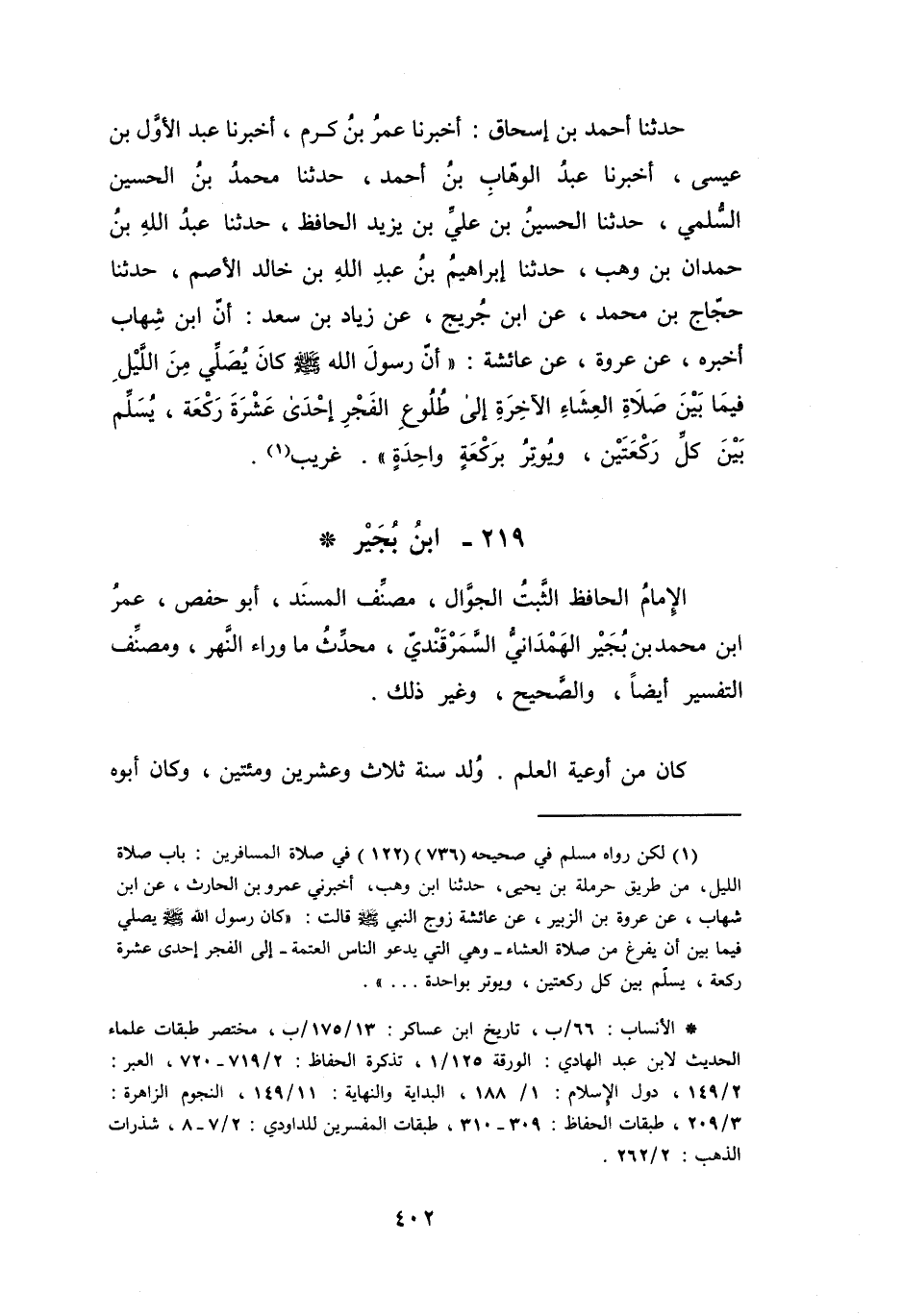 219 - ابْنُ بُجَيْرٍ عُمَرُ بنُ مُحَمَّدِ بنِ بُجَيْرٍ الهَمْدَانِيُّ *