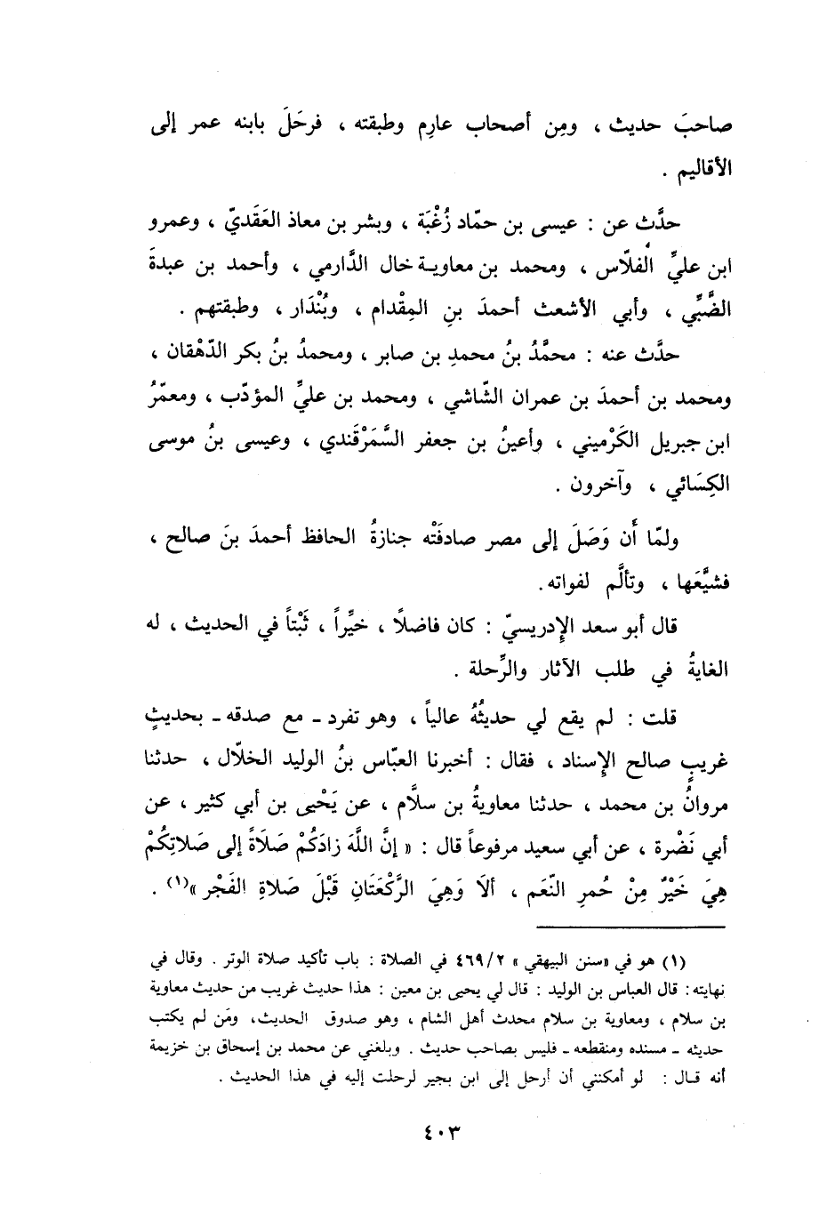 (1) هو في " سنن البيهقي " 2 / 469 في الصلاة: باب تأكيد صلاة الوتر.