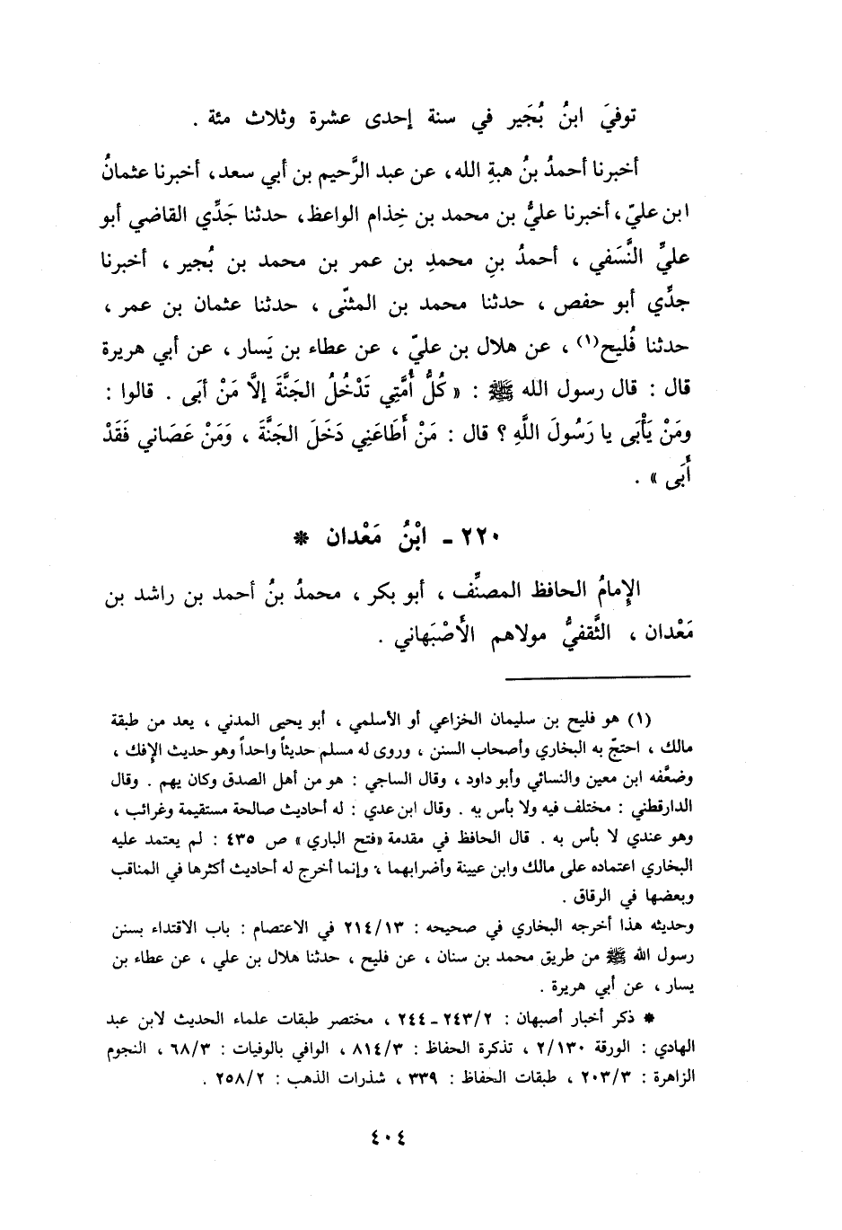 (*) ذكر أخبار أصبهان: 2 / 244 243، مختصر طبقات علماء الحديث لابن عبد الهادي: الورقة 130 / 2، تذكرة الحفاظ: 3 / 814، الوافي بالوفيات: 3 / 68، النجوم الزاهرة: 3 / 203، طبقات الحفاظ: 339، شذرات الذهب: 2 / 258.