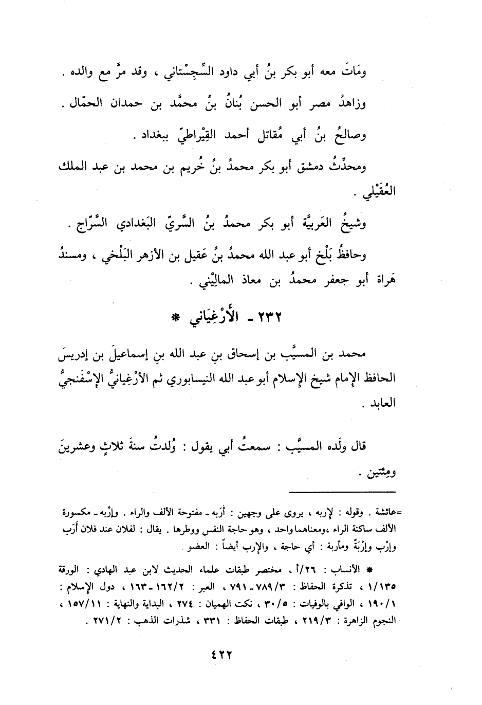 232 - الأَرْغِيَانِيُّ مُحَمَّدُ بنُ المُسَيَّبِ بنِ إِسْحَاقَ *