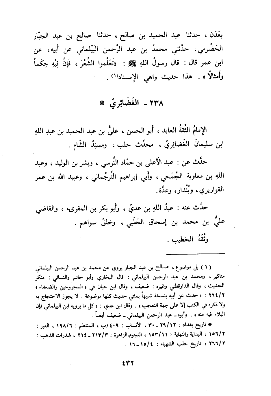 238 - الغَضَائِرِيُّ عَلِيُّ بنُ عَبْدِ الحَمِيْدِ بنِ عَبْدِ اللهِ *